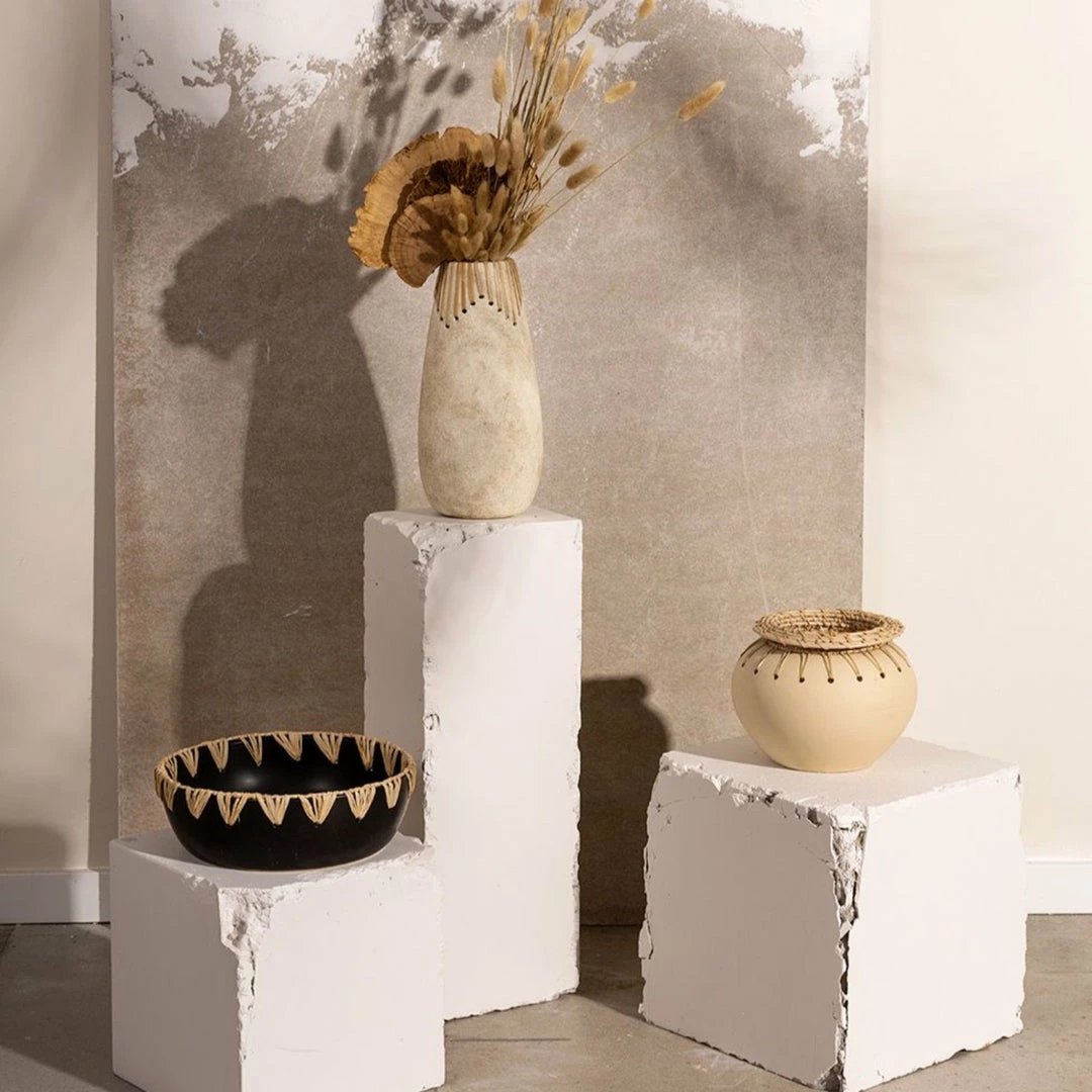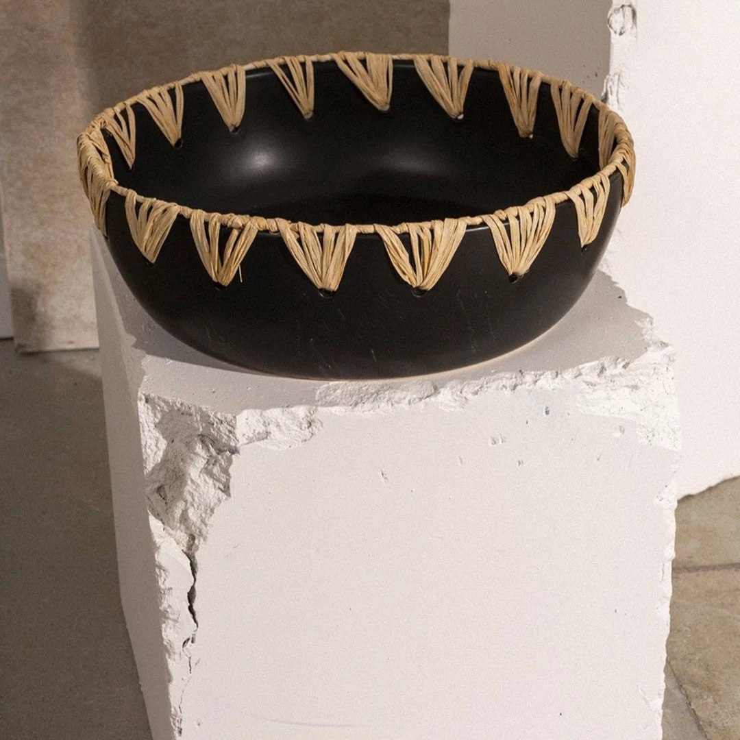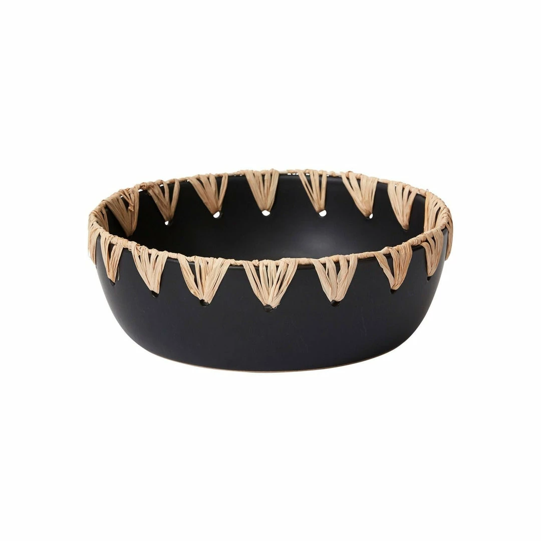 Unique yet classic, the Alaya Bowl features a matte black glazed finish, a simple silhouette, and a natural hand-woven design for added interest and style. Reminiscent of ancient pottery with a modern twist, the Alaya Bowl is a piece of art for your home or garden.