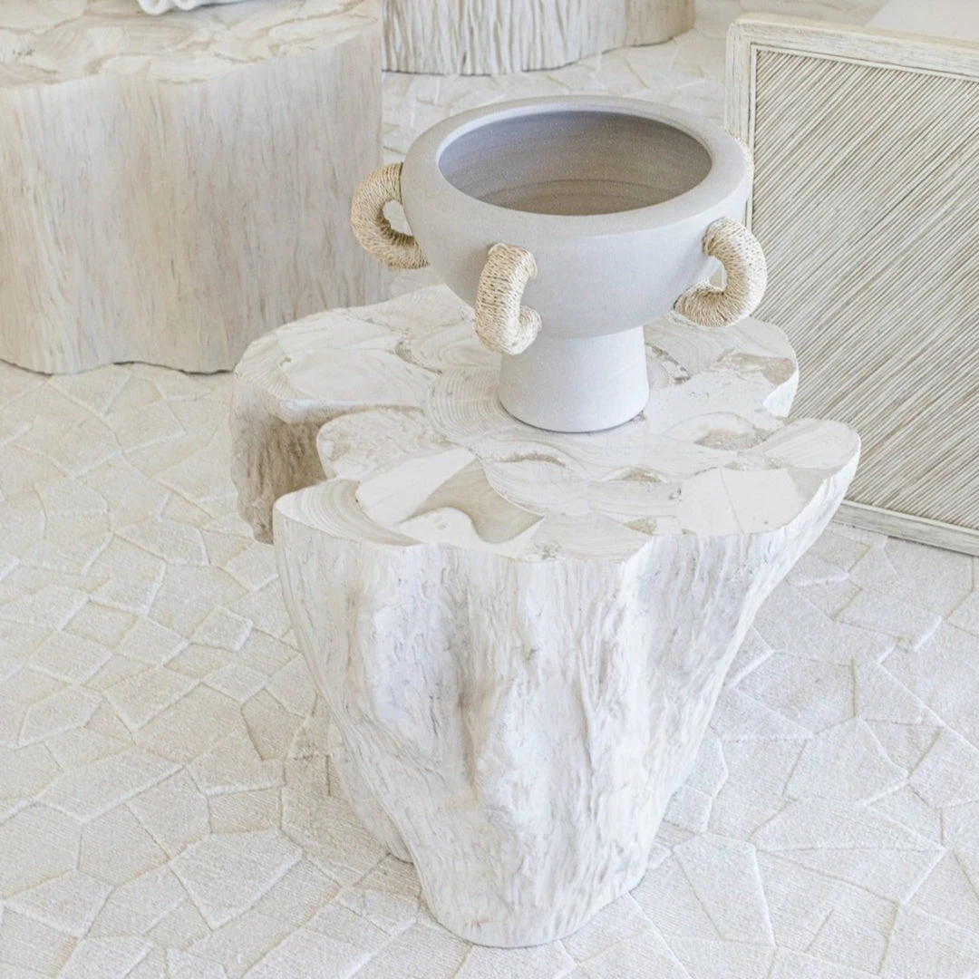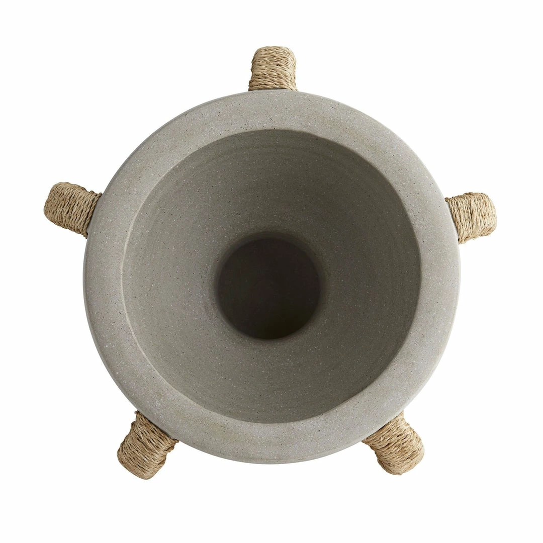 Natural materials play in our Clyde Centerpiece to create a novel aesthetic. Terracotta is molded into an almost kylix-shaped piece and finished in fossil gray before being fashioned with five abaca-wrapped handles. A stylish and sturdy option for centering a tablescape indoors or in covered outdoor areas.