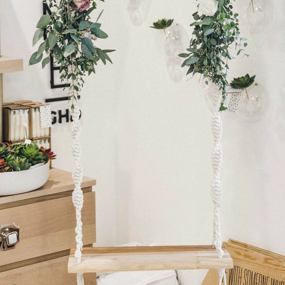 Cotton rope twisted and weaved tied and teak plant seat. Note that teakwood tends to wither when over time. Designed for both indoor and outdoor use.