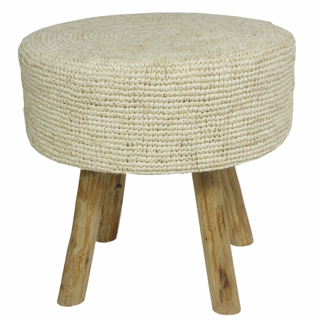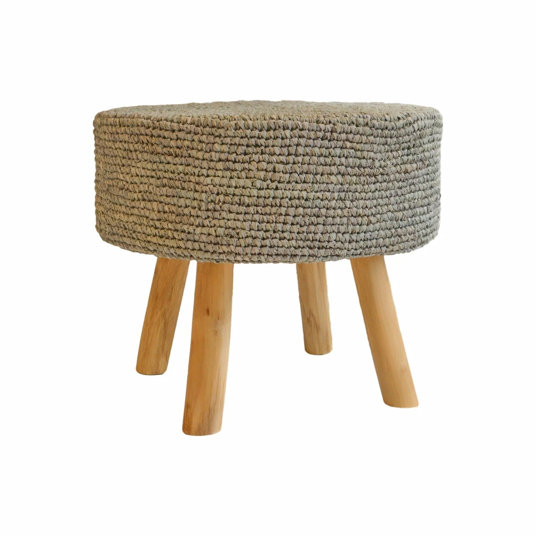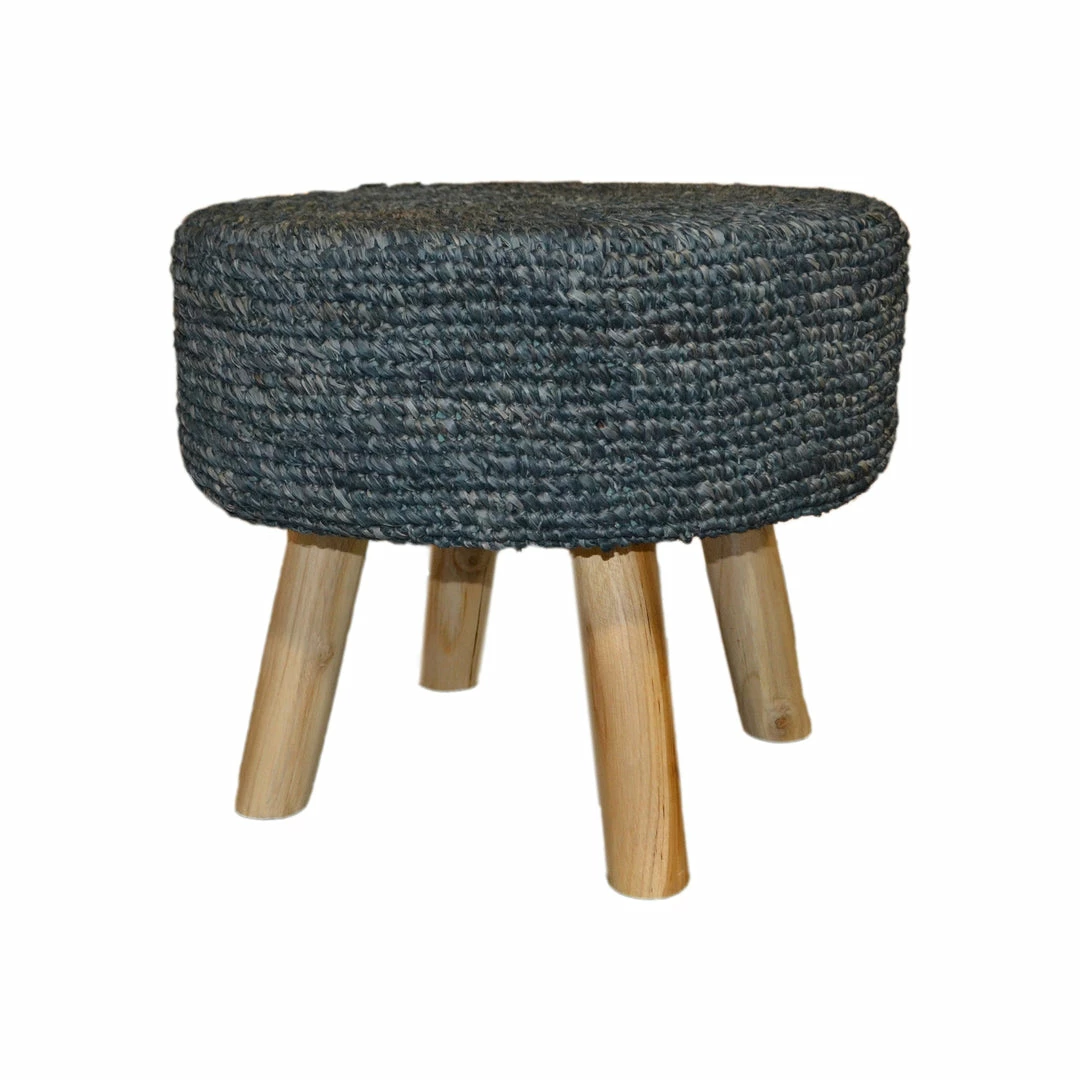 Weaved material with teakwood legs. Available in Black, Natural, Charcoal Grey and Platinum Grey.