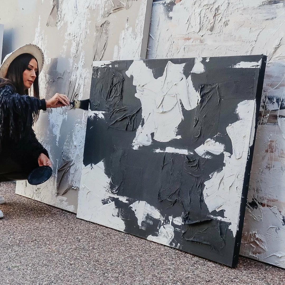 Canvas by Arizona artist, Ashley Craig. The Mixed Media Compositions are handmade with molding materials to create a smooth abstract expression with nuanced texture on canvas to elevate your space. Ashley has collaborated with StyleMeGHD to create this unique art collection that is inspired by architecture, fashion and everyday design elements, textures or materials with an organic abstract aesthetic. Each canvas is a handmade original work of art and will arrive with natural variations that may differ from the imagery shown. This collaboration by StyleMeGHD x Ashley Craig is sure to bring a unique interpretation to every collector’s home.