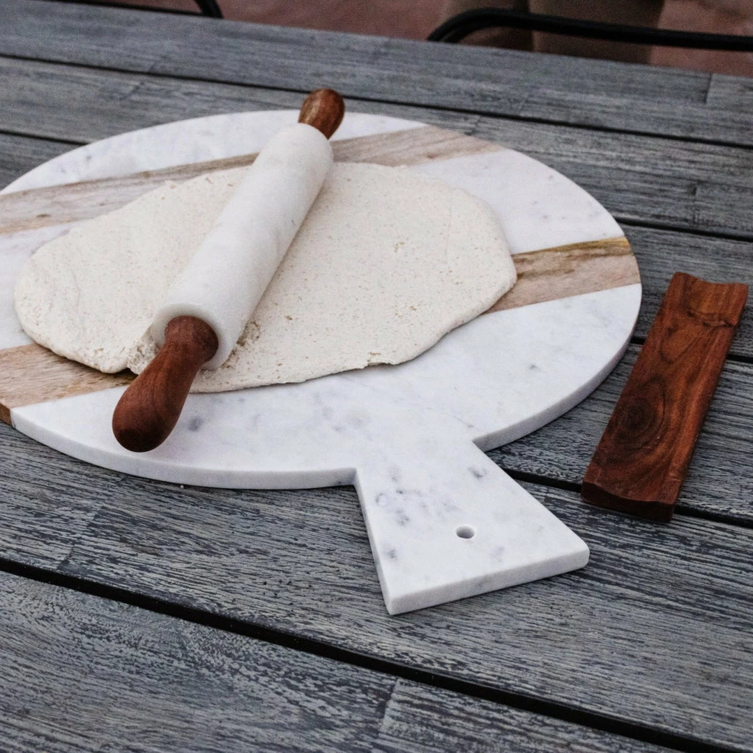 Elegant design to fit your contemporary modern home decor. Its weighty marble pin is ideal for working pastry and other doughs that require cold pressure, while its practical wooden handles are comfortable in the hand.