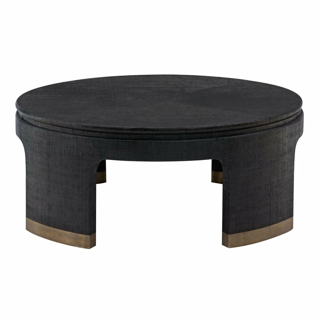 Raffia covered surfaces in Black finish. Metal ferrules in Antique Satin Gold finish