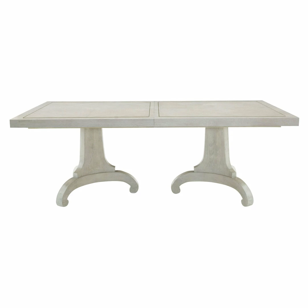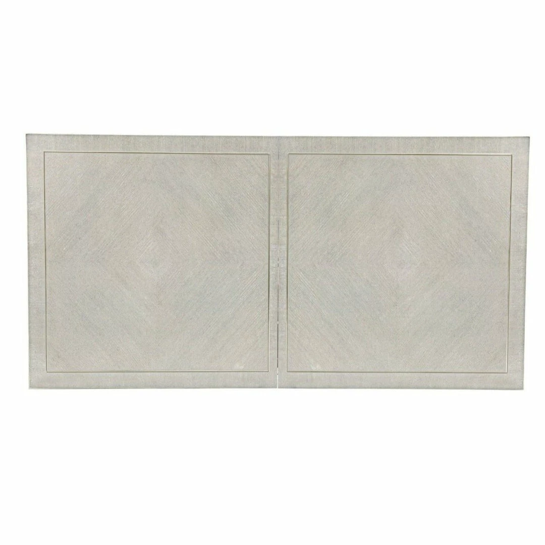 Ash solids and quartered ash veneers, Heather Gray finish, fancy face top with stainless steel metal inlay, one fancy face 22″ leaf with stainless steel metal inlay, adjustable glides and base ships as a pair.