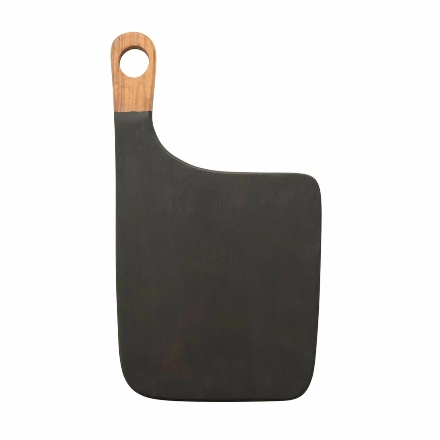 This cutting board is a piece every kitchen needs. Made out of acacia wood, this cheese/cutting board features a natural and black coloring that goes with any home decor style. This board lends itself perfectly into a boho home, and will serve your guests in a beautiful way