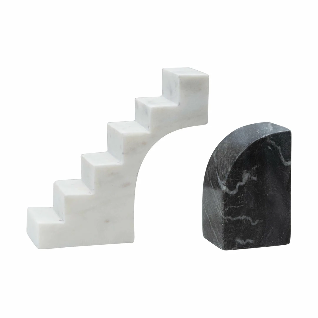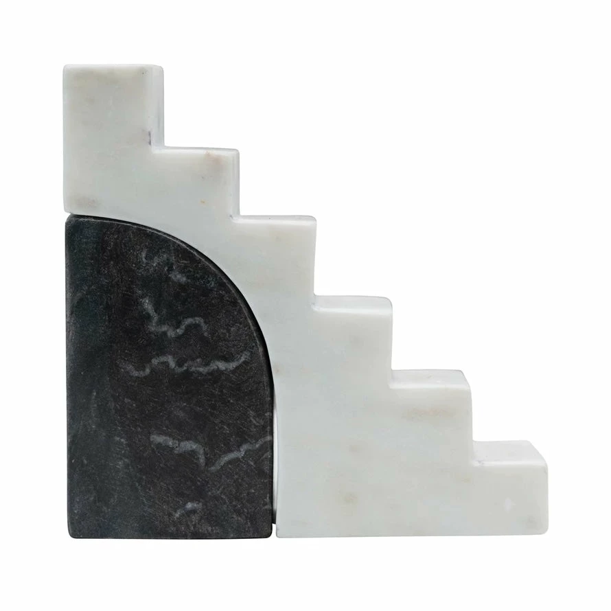6″L x 2″W x 6″H Marble Stair-Step Décor, Set of 2, Black & White
