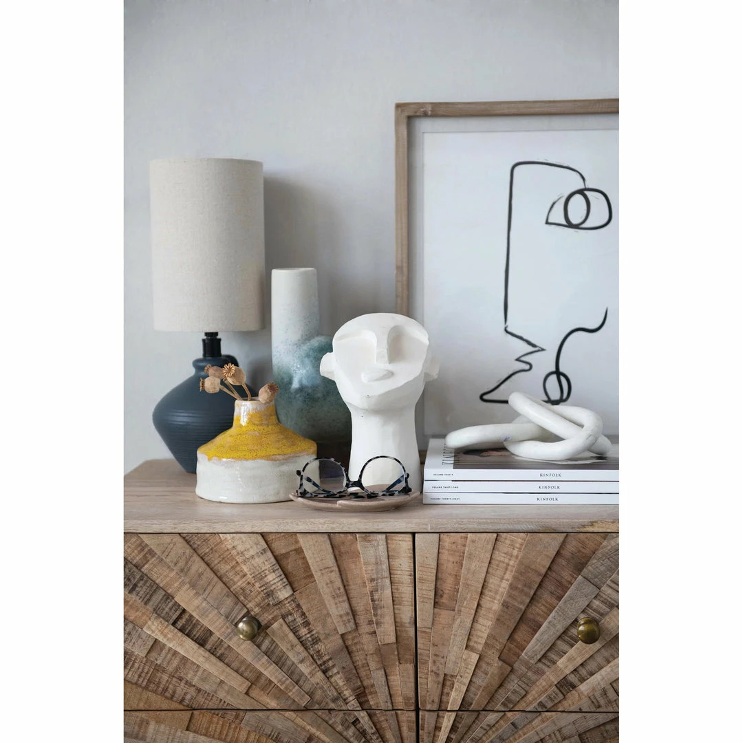 The Victoria Cement Face Decor is a piece of artwork that is found as decor in a finish of matte white.