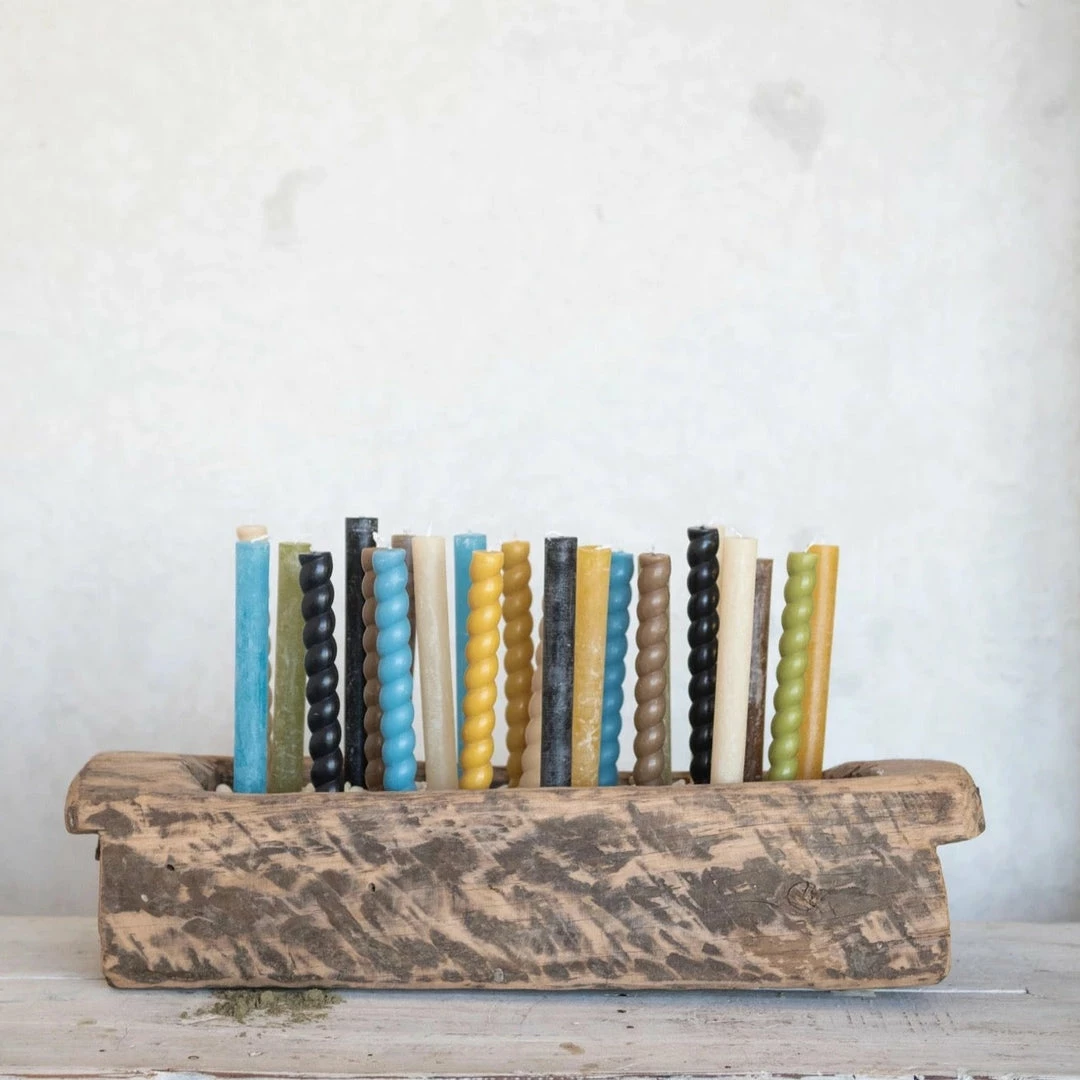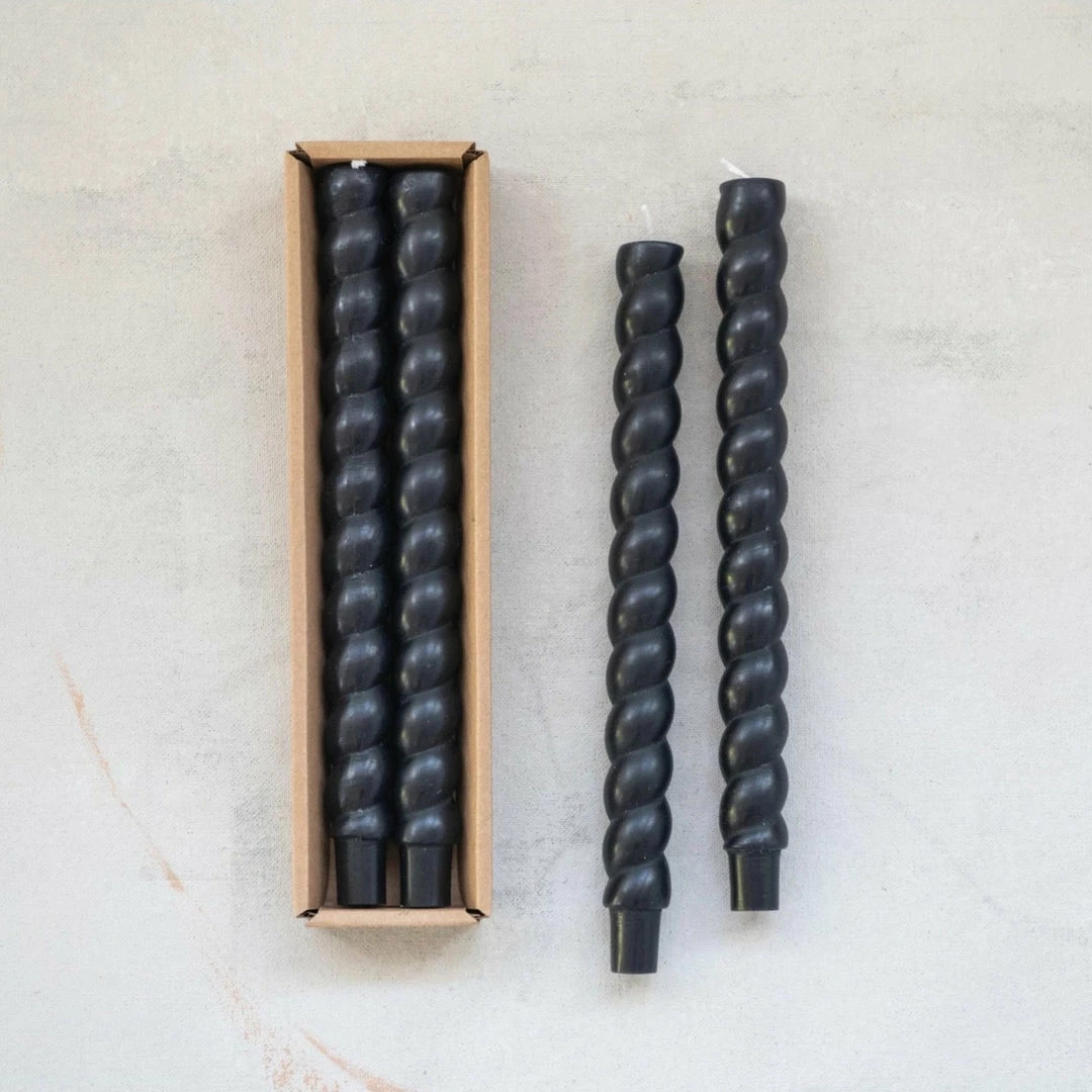 These taper candles are an effortless way to add both style and ambience to any home. These unscented candles come in a set of 2, and each feature a detailed and unique twisted shape. These are perfect for intimate gatherings, dinners, and parties.Β Approximate Burn Time 10 Hours