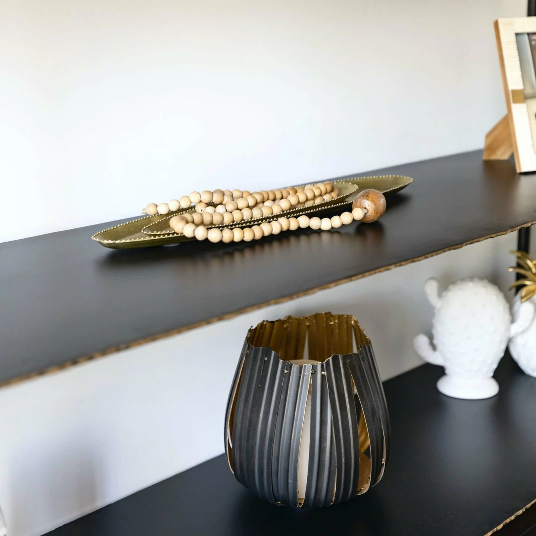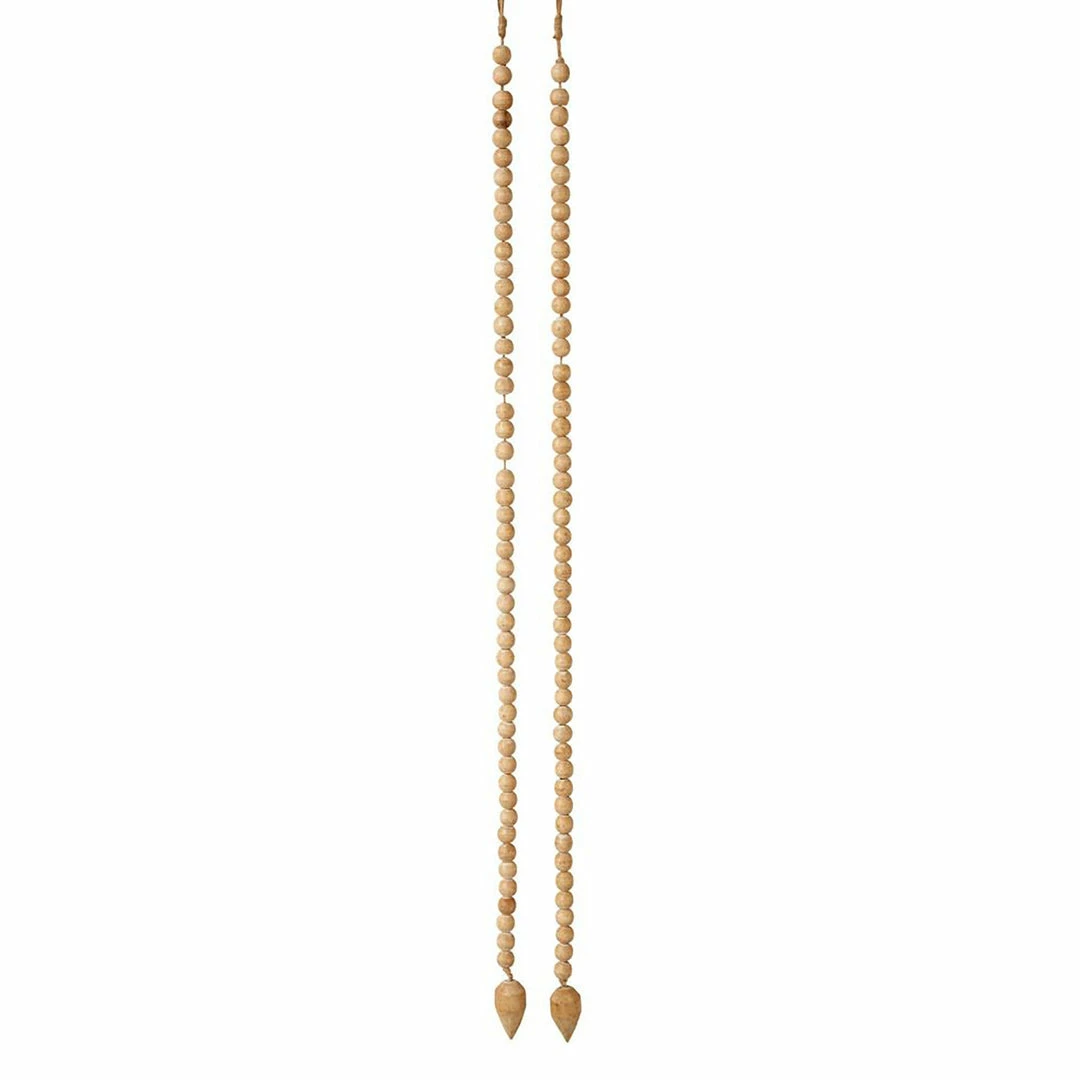 The Tear Drop Strand is made of wooden beads and one tear drop shaped statement bead at the end. It can be used for filling a vase, styling a table/ shelf, or hanging on a wall in sets. It is the perfect accent for most spaces.