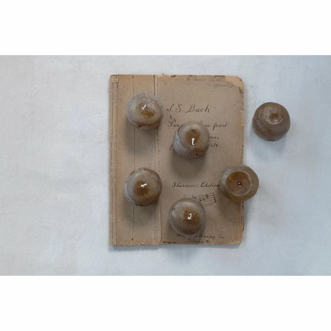 Unscented Stone Shaped Votive Candles in Box, River Rock Color, Set of 6. Approximate Burn Time 15 Hours.