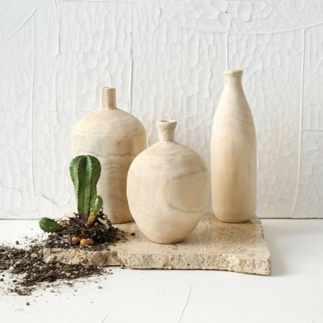 Wood vases in 3 different styles