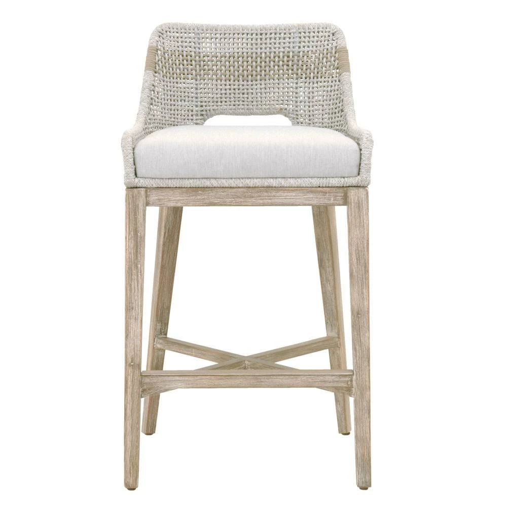 Transitional style counter stool featuring interwoven rope pattern and “X” stretcher base design.