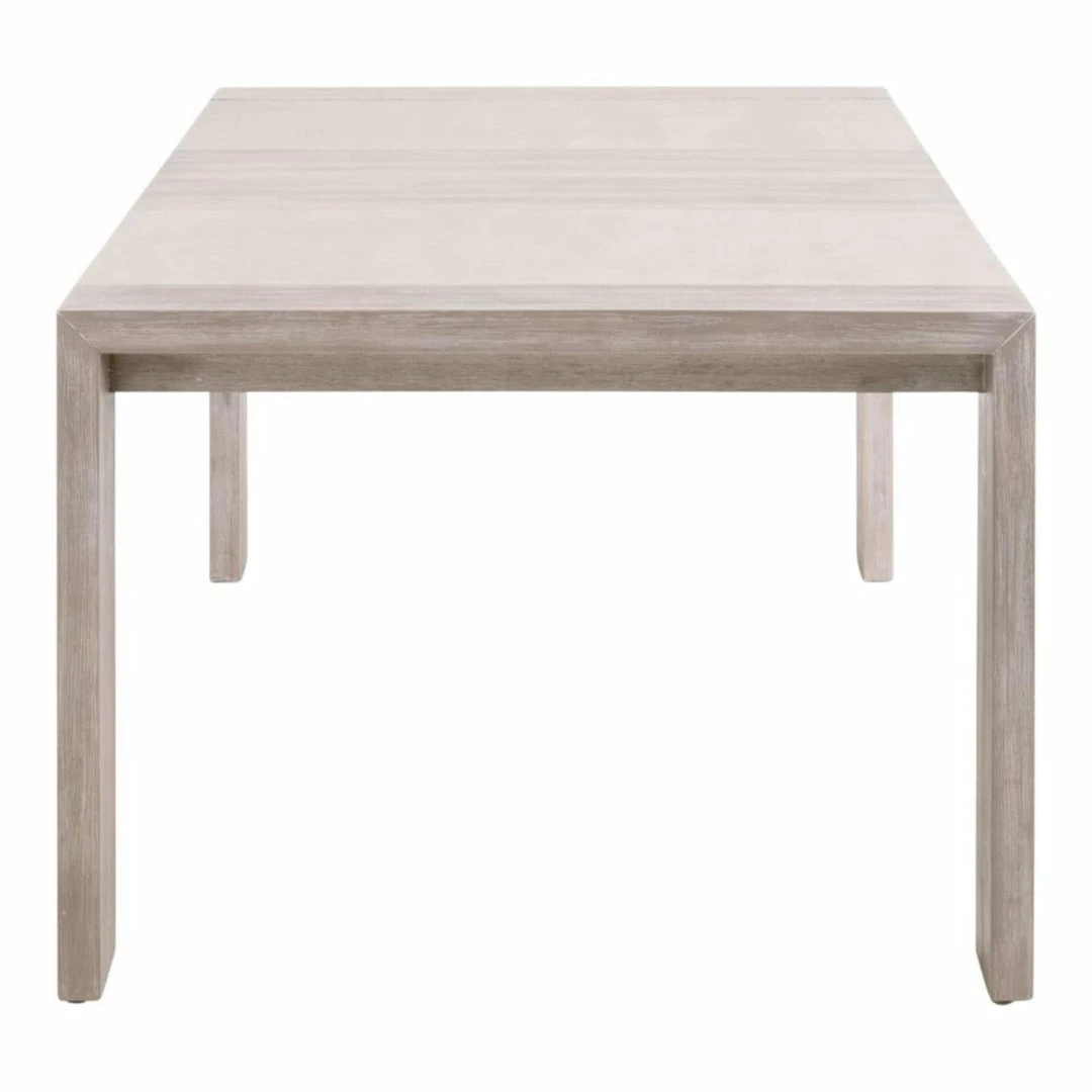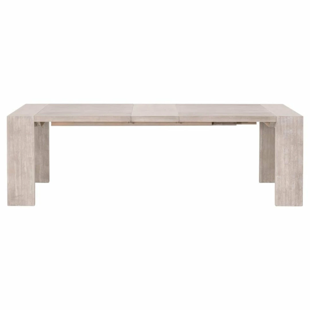 Simplicity meets modern and traditional designs with this extension dining table. Constructed with a sleek and simple silhouette, this wood table was thoughtfully crafted to create plenty of space to enjoy dining with your loved ones. The wide, squared table legs are molded to the tabletop to create a seamless look. This creates plenty of space for chairs to slide under the table on each side without worrying about bumping into a base. It is made of natural gray acacia wood and contains two removable leaves. Comfortably seats up to 8 people with both leaves inserted.