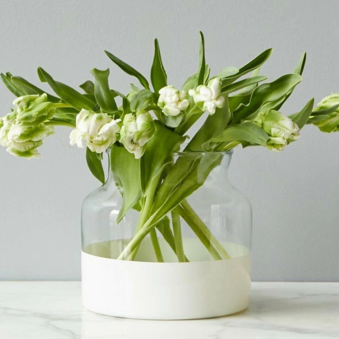 The Brielle Jar is a made from recycled glass collected from around Central Europe. This jar is mouth blown into vintage inspired casts to retain their old-world appeal. A bold splash of high-gloss white paint was added to the bottom of these gorgeous jars to give a contemporary element to the once rustic vessel.
