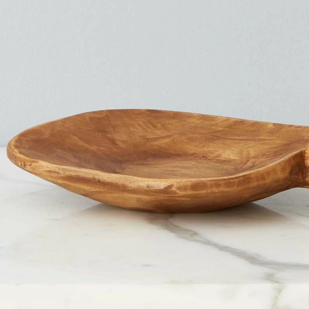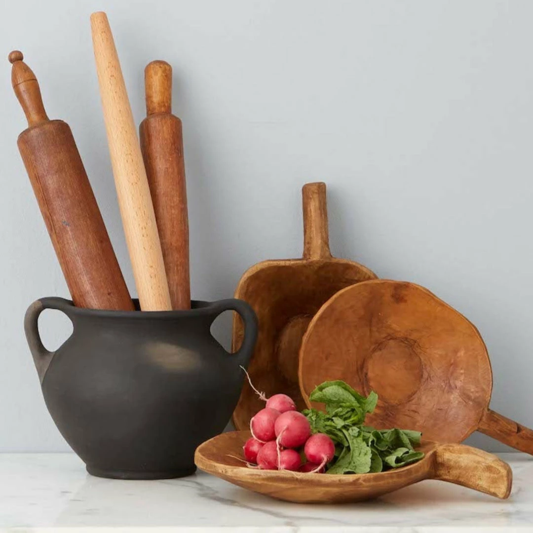 Handcrafted by Bulgarian families in countryside villages, this Found Scoop Bowl is a must-have home accent. Versatile in design, this small bowl is perfect as a coffee table catch-all or for storing fresh produce on the counter. Make it a set and use as individual place settings and easily carry from kitchen to table with the convenient carved handle. Due to the handcrafted nature of this product, no two bowls are alike and each will differ.