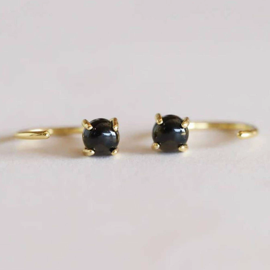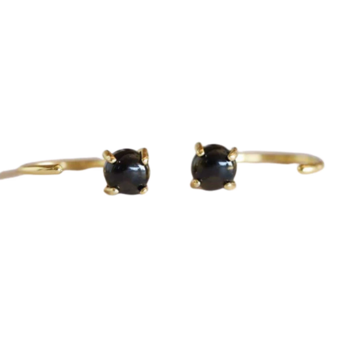 Made to block negative energy, these dainty Obsidian Huggies will stand out from the rest and are perfect for everyday wear. Featuring a petite polished Obsidian stone with an 18k gold-plated sterling silver setting.