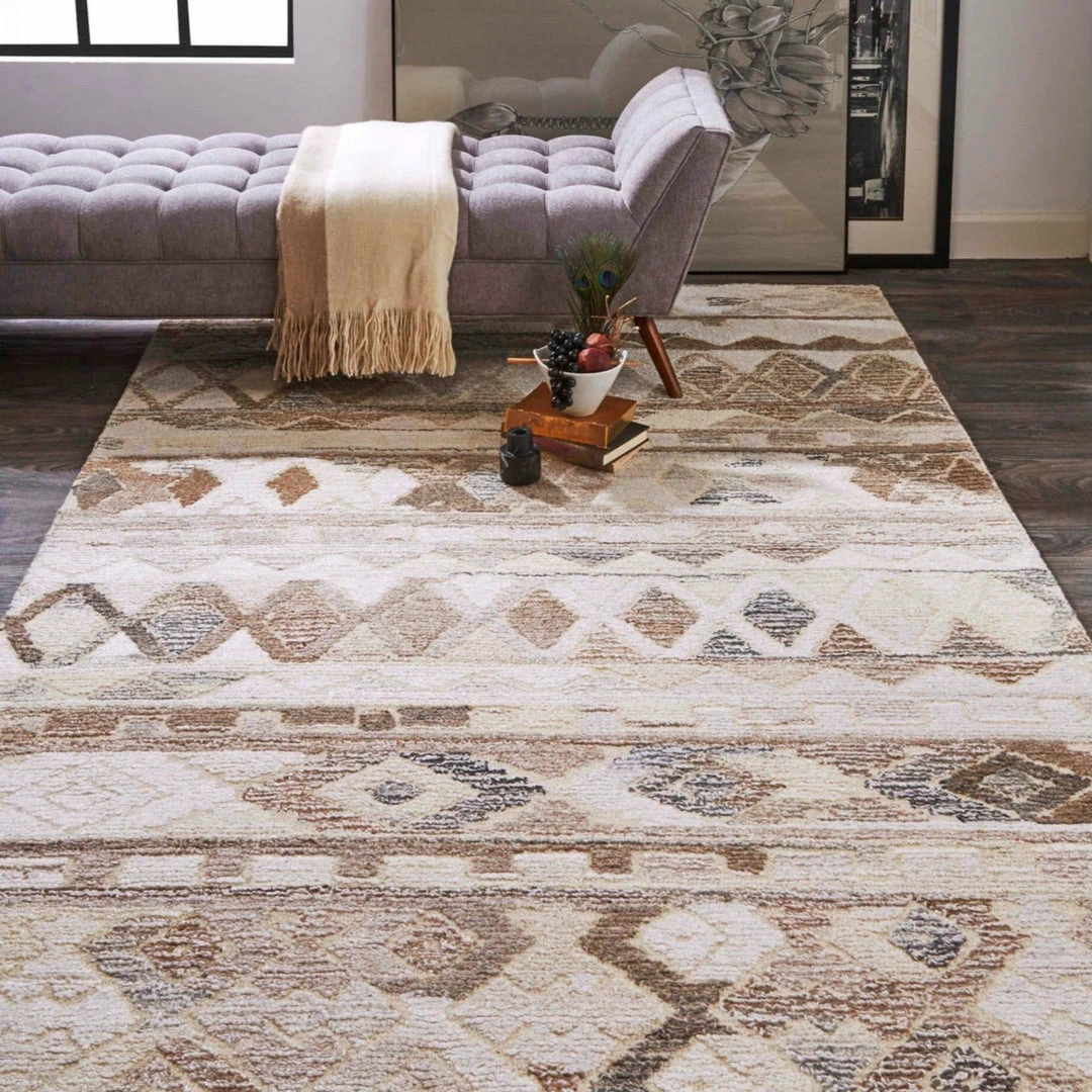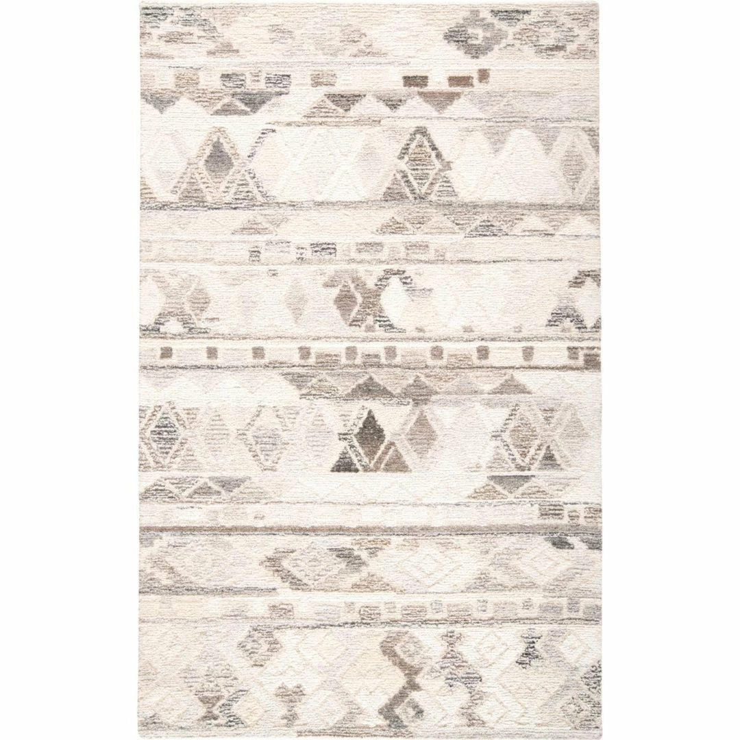 A wool and viscose pile is meticulously hand-tufted in sophisticated grays and warm taupes accented by inky blacks and a subtle sheen. The transitional geometric motifs are grounded by the neutral color palette making this collection approachable and easy to decorate with.