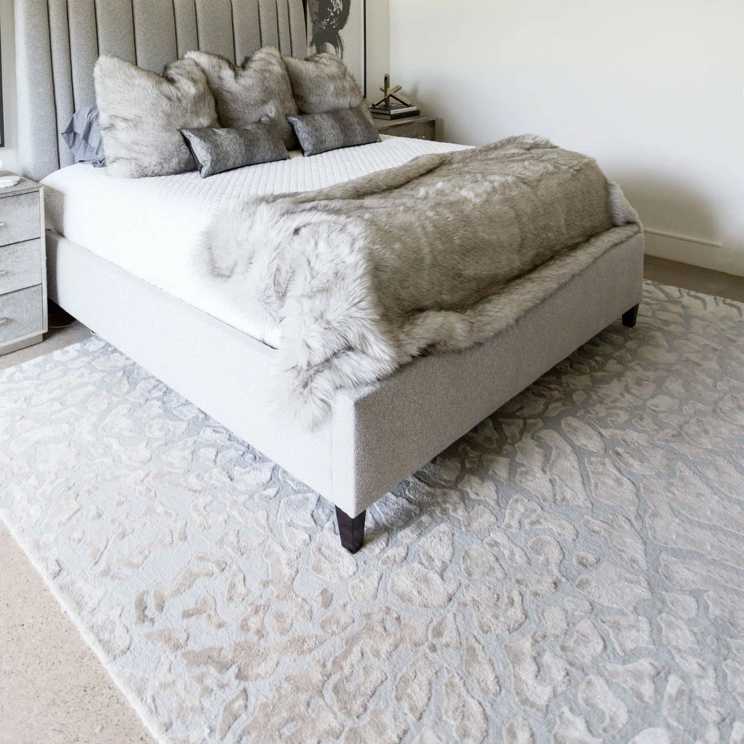 Classic prints are reimagined with contemporary style. Hand-tufted in India each spectacular design dances within a neutral palette – grounding your room’s decor but never demanding the spotlight. Featuring a subtle sheen over the meticulously detailed high-low construction Mali rugs let you walk on the wild side while preserving posh sophistication.