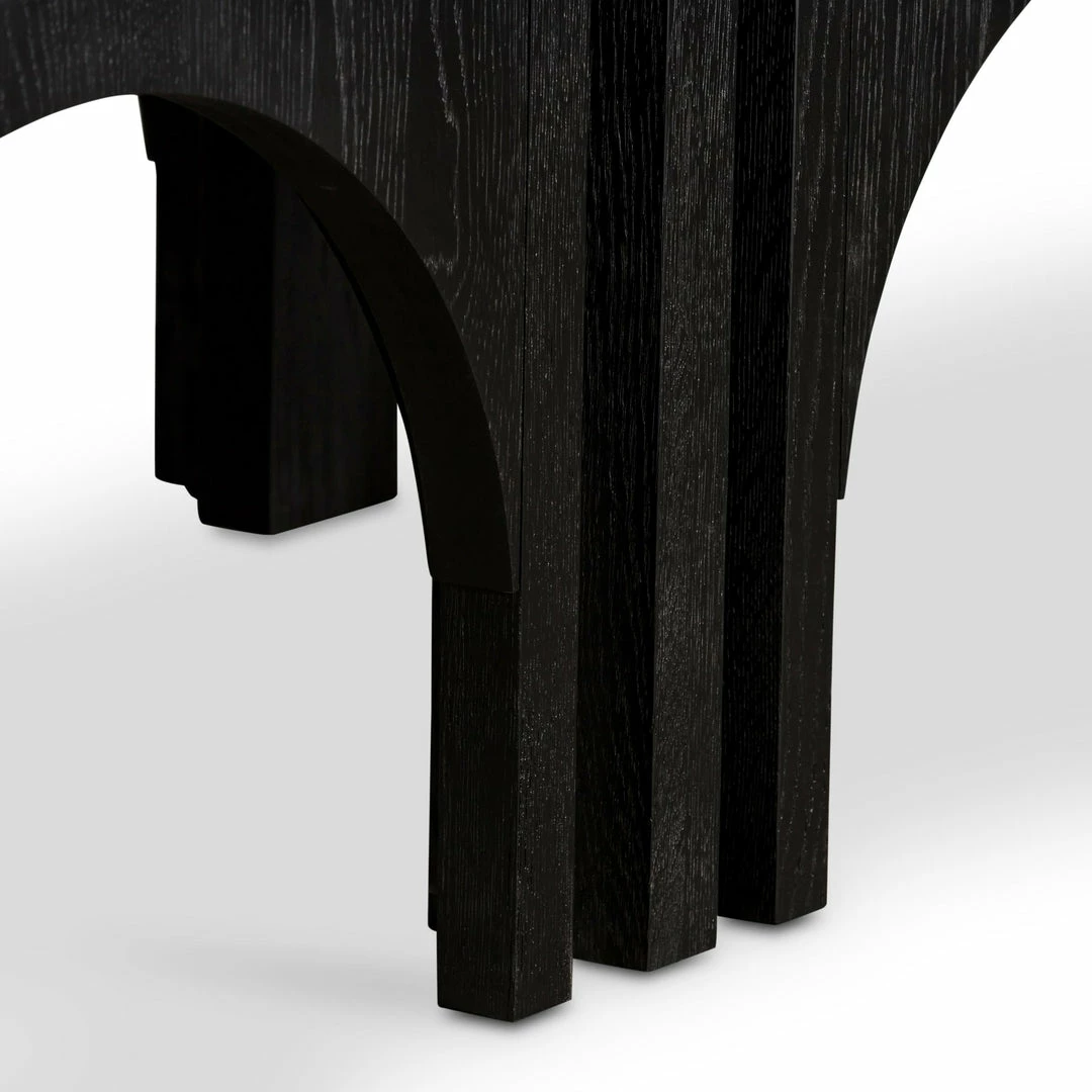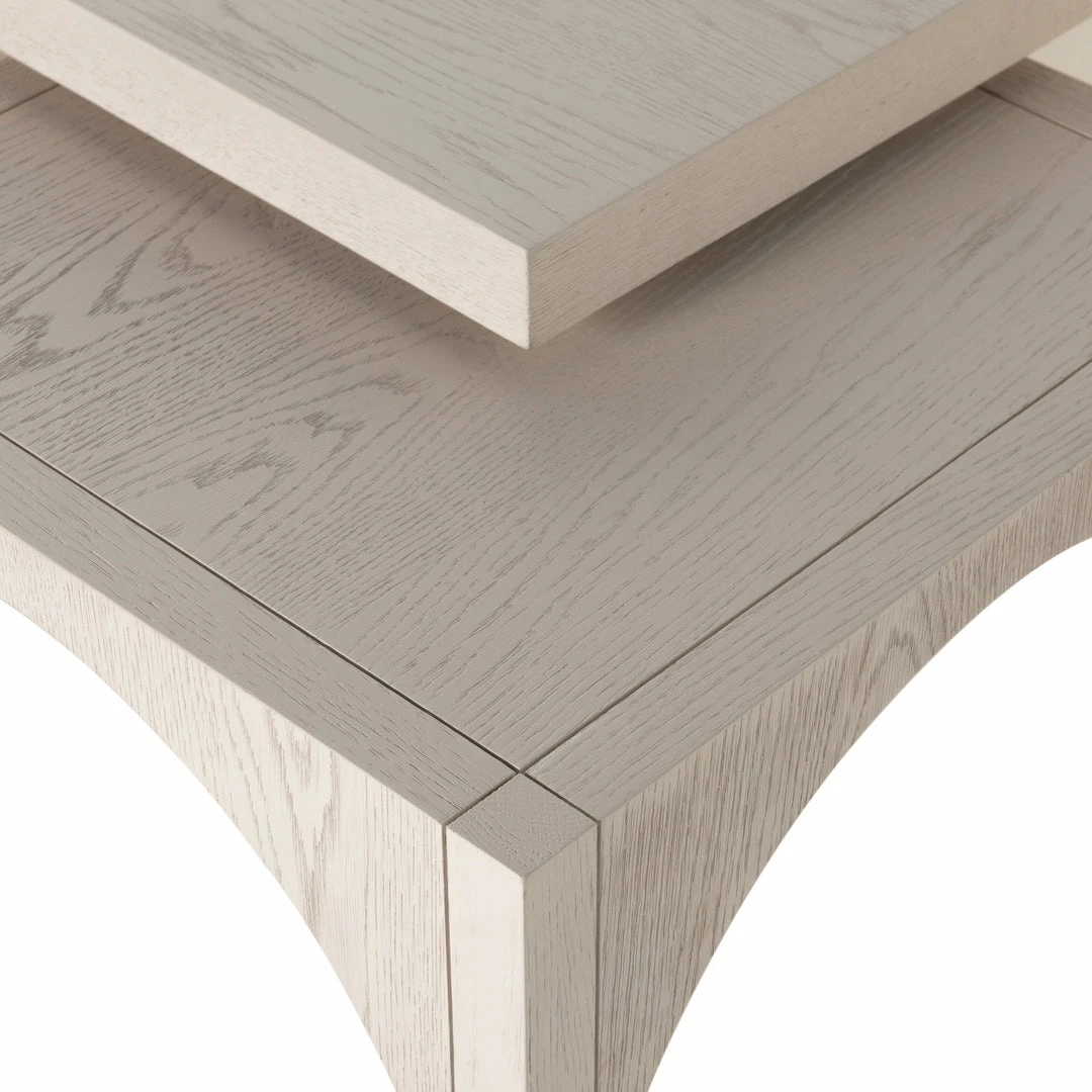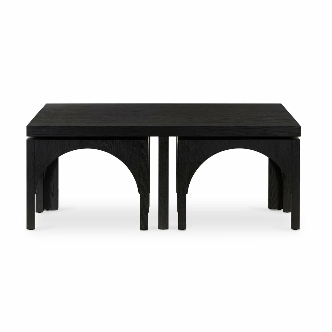 Meet a forward-thinking oak coffee table as stylish as it is functional. With beautifully arched sides, four separate nesting tables cleverly slide out to create ample extra surfaces as needed, tucking back under with ease.