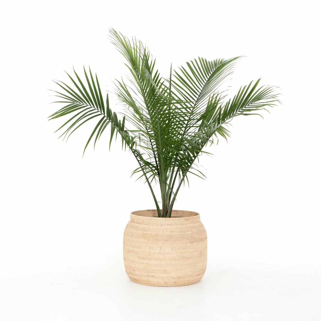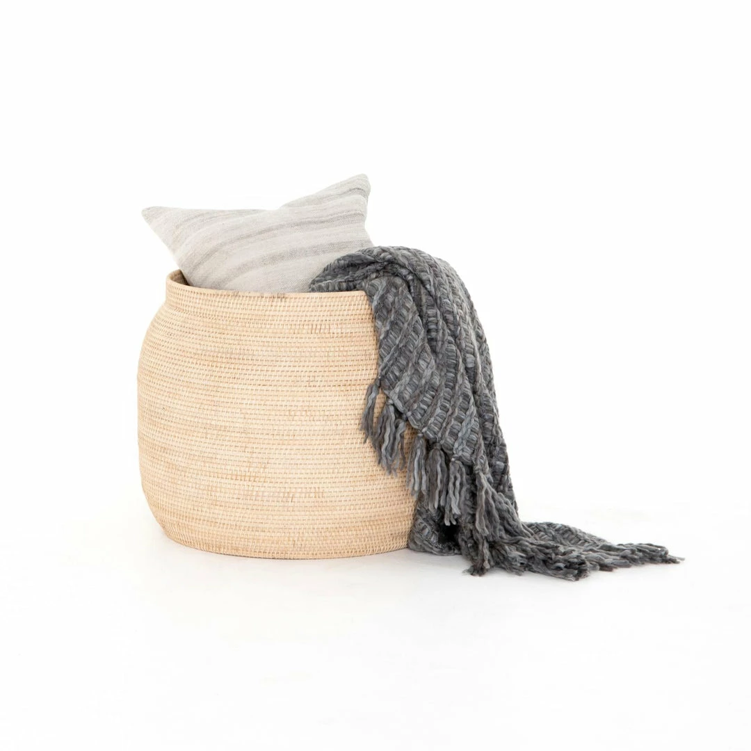 Natural Lombok rattan tightly weaves for a clean look and textural feel. Perfect for storage of toys, blankets, or indoor plants (liner required; not included).