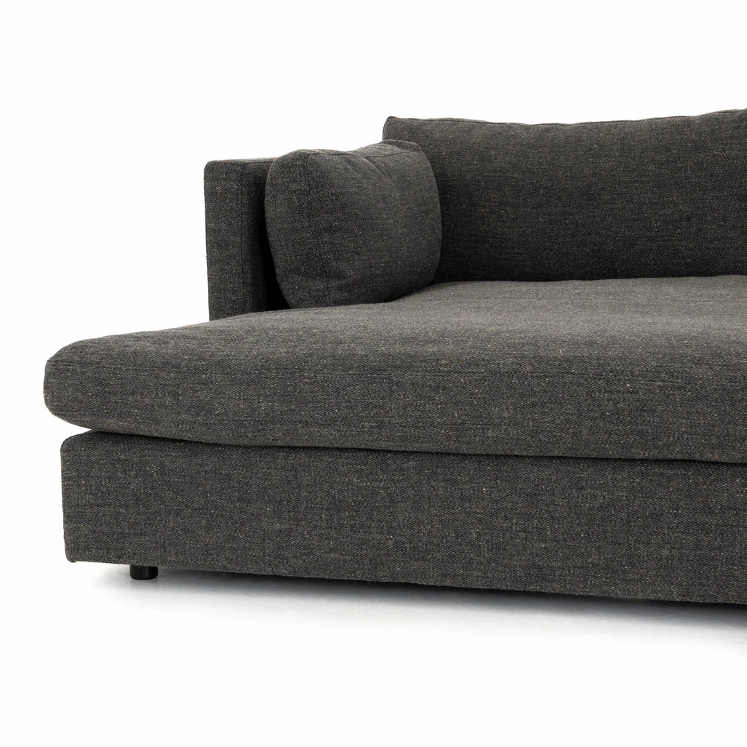 Equal parts stylish and functional. Plush, pillow-top seating upholstered in a grey performance-grade fabric exclusive to Four Hands, invitingly wide and just as comfy. Perfect for movie nights.