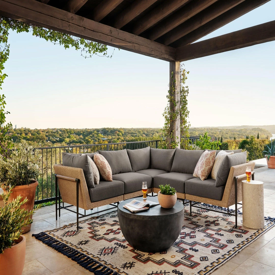 Stylish indoors or out. An antique rust finish highlights aluminum’s natural depth, for a sleek, simple look with implied movement. Cover or store indoors during inclement weather and when not in use.