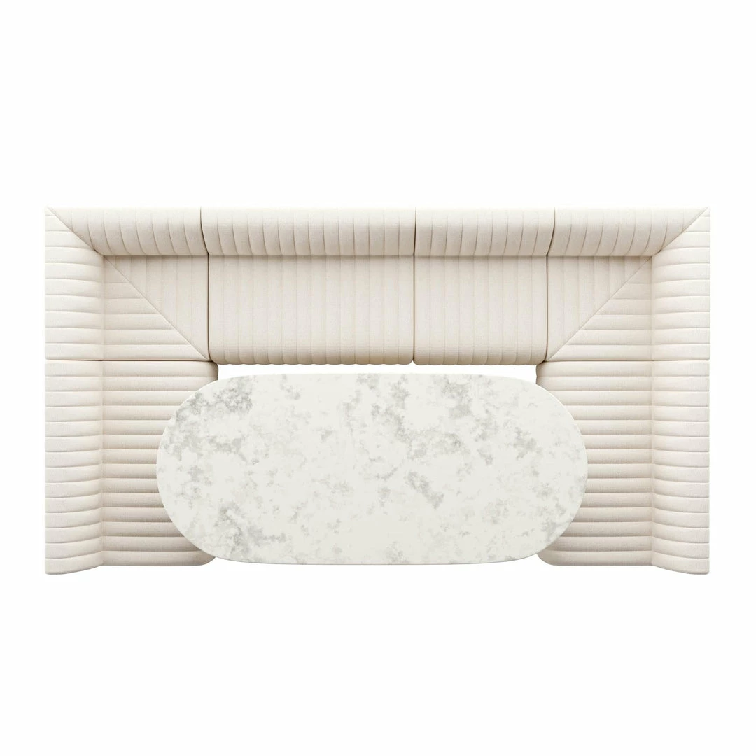 High-performance fabric in a versatile oatmeal hue features dramatic channeling, for trend-forward texture and sumptuous sit. Option to pair with matching pieces for clever modularity.