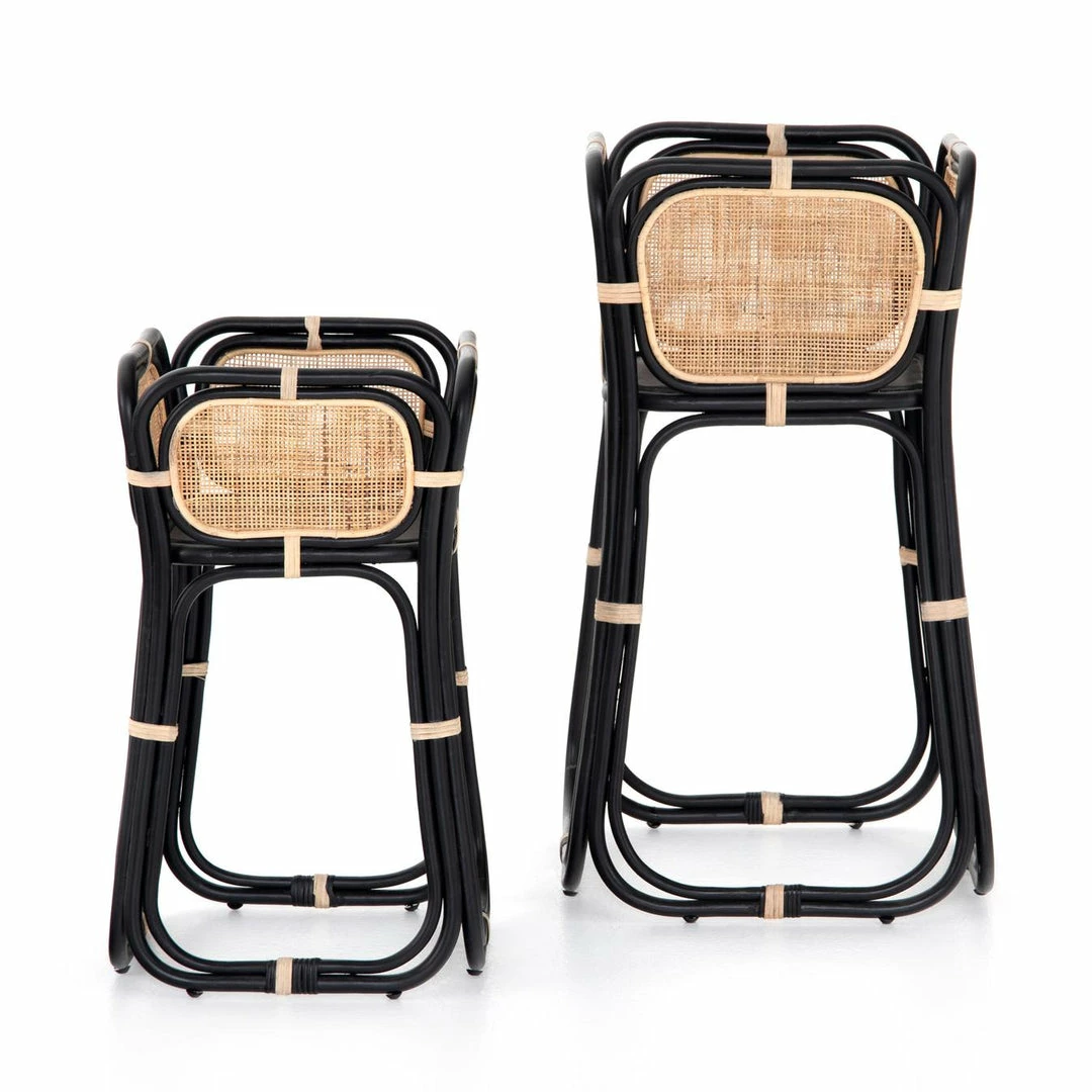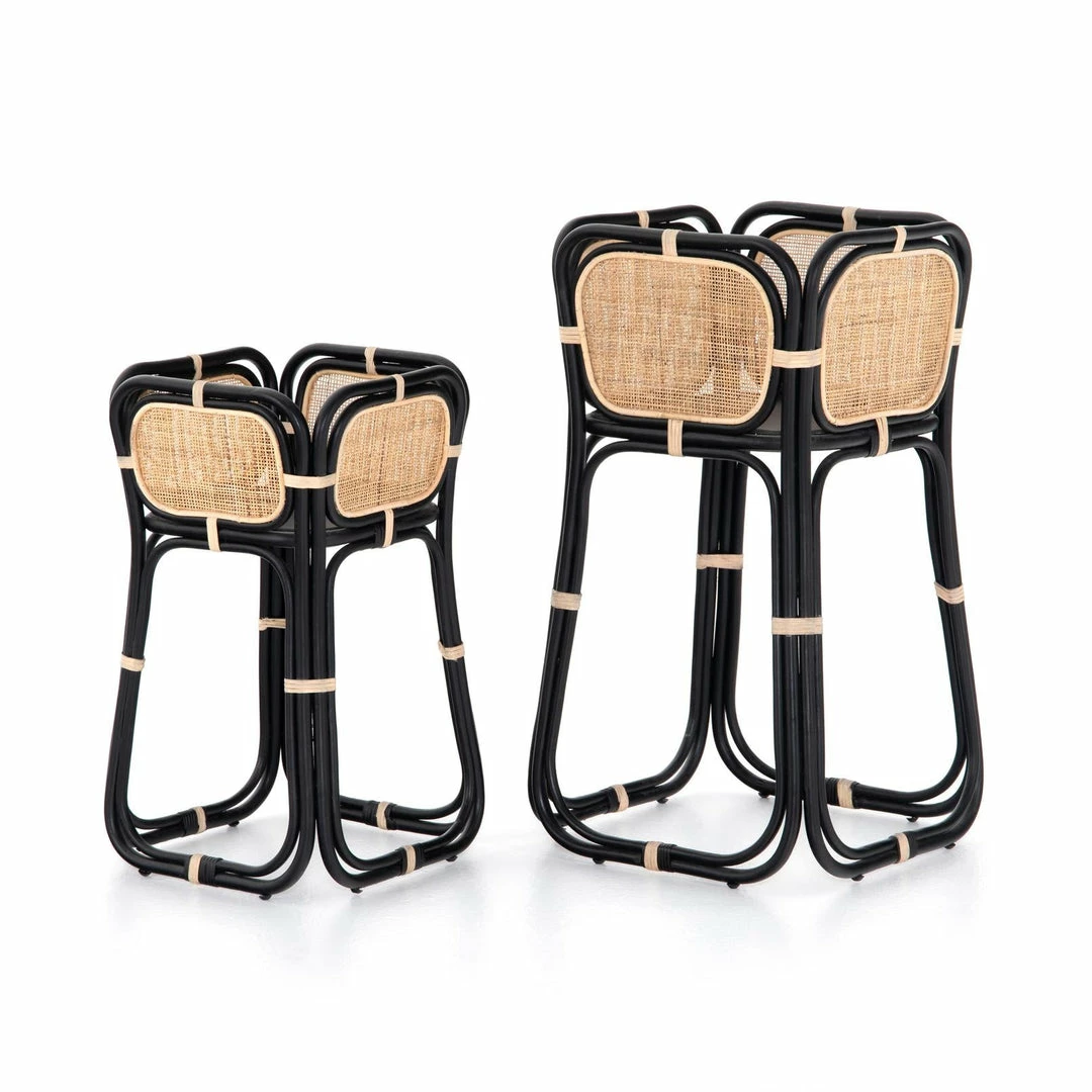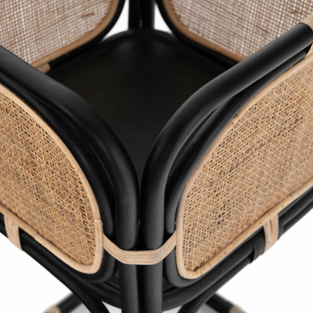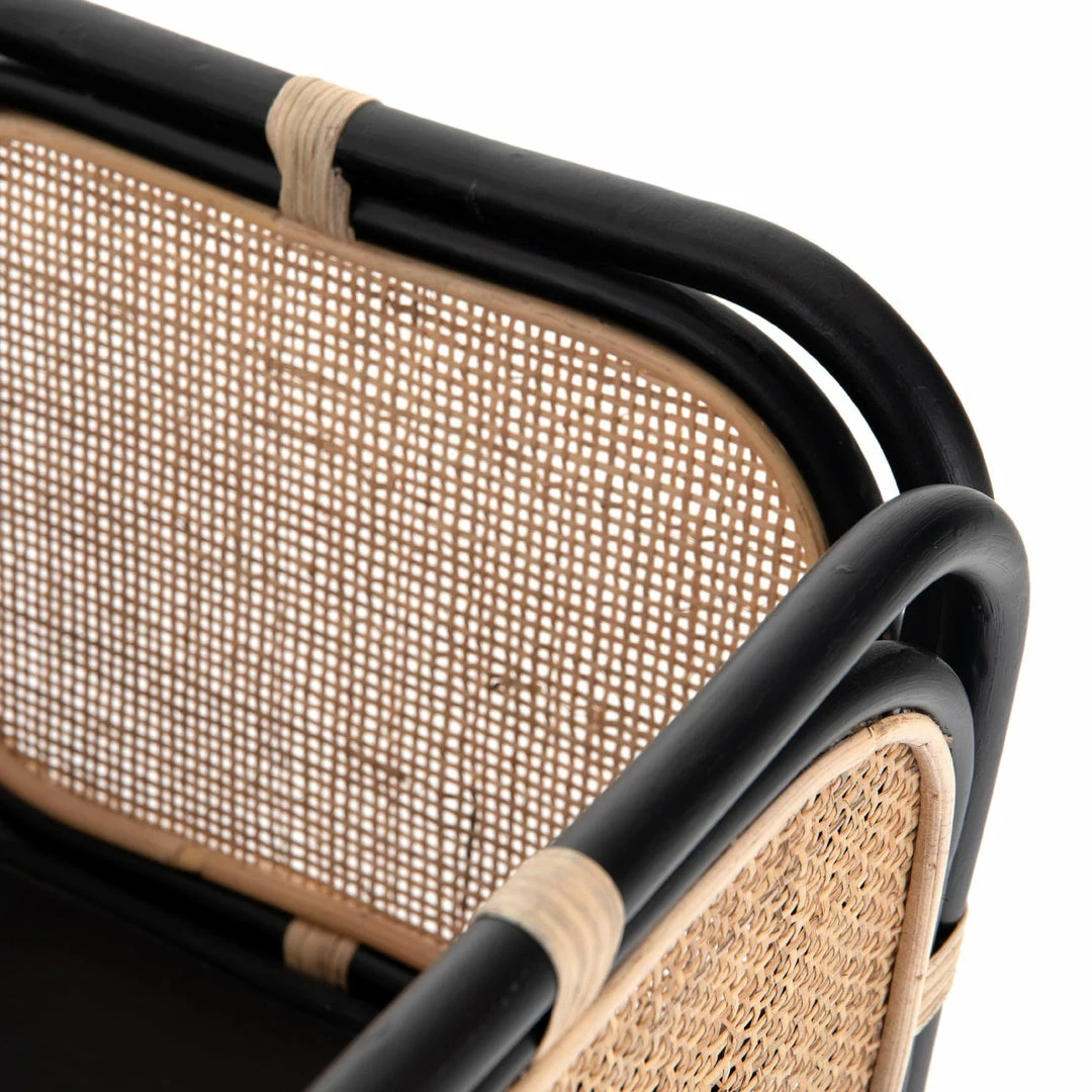 Uniquely on-trend. Black-finished rattan forms a shapely frame for woven natural cane, bringing a texture-driven look to indoor plant storage. Pair with smaller matching planter for a layered look.