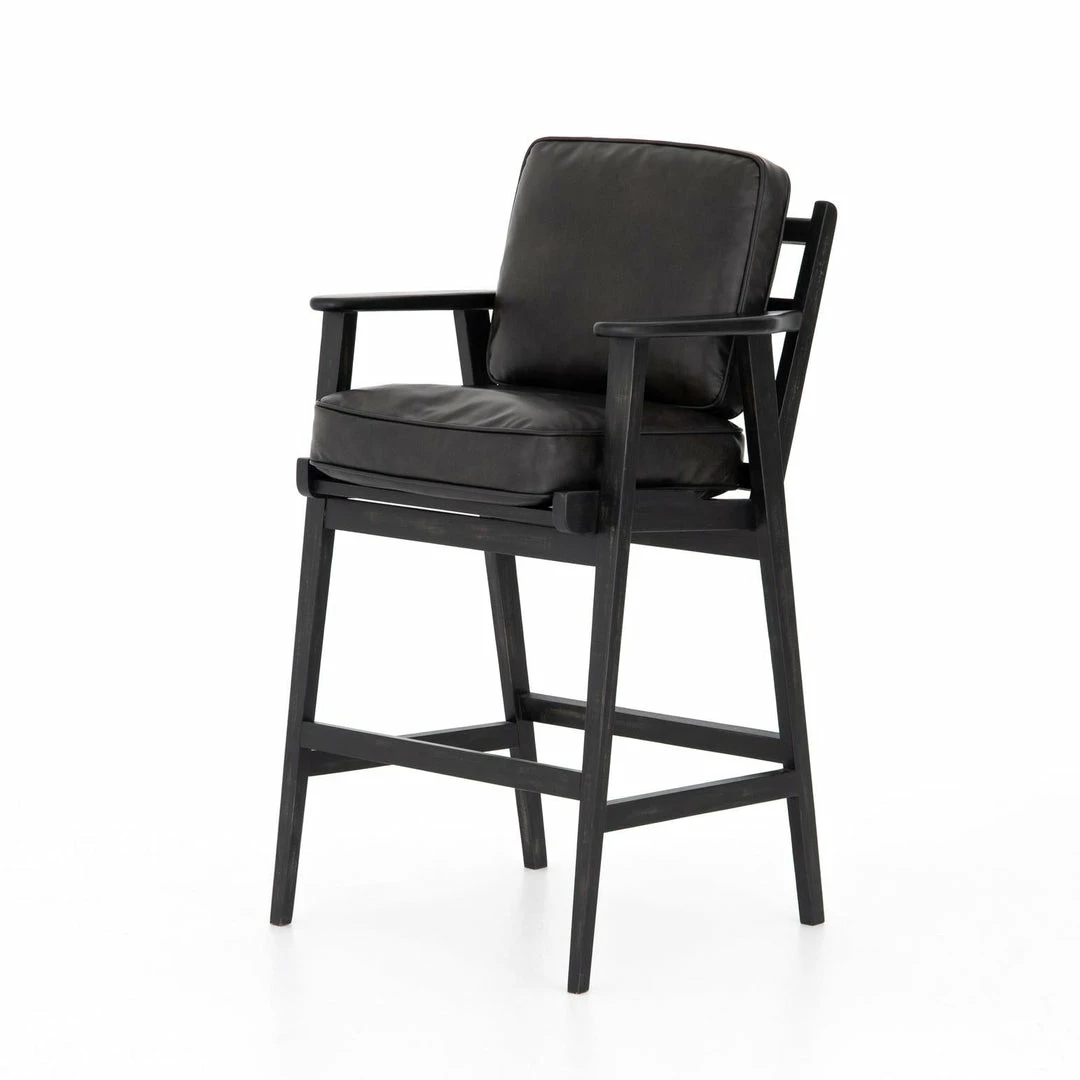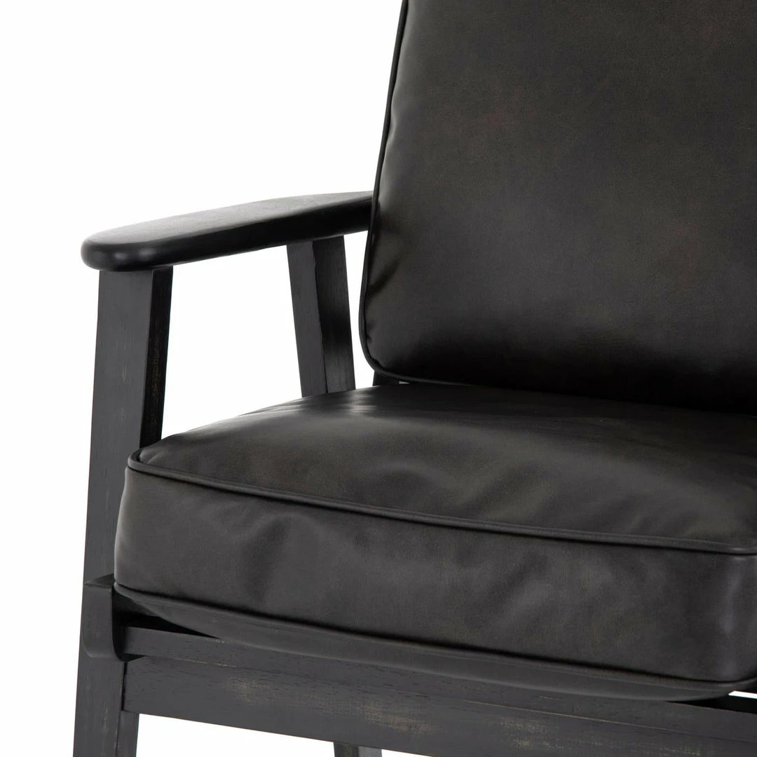 An elevated take on the classic Adirondack, with distressed black top-grain leather and wire-brushed black oak for effortless cool.
