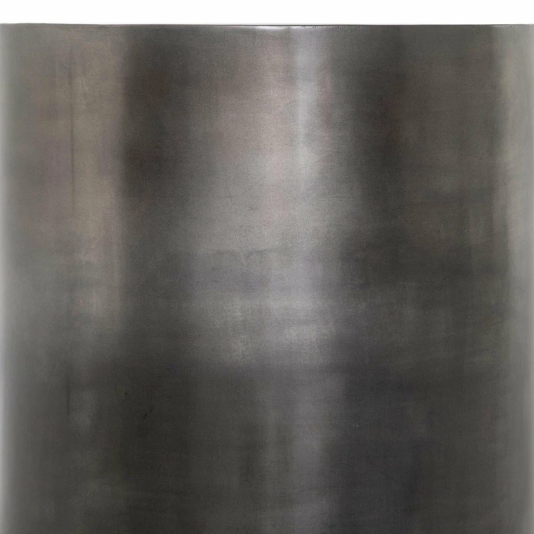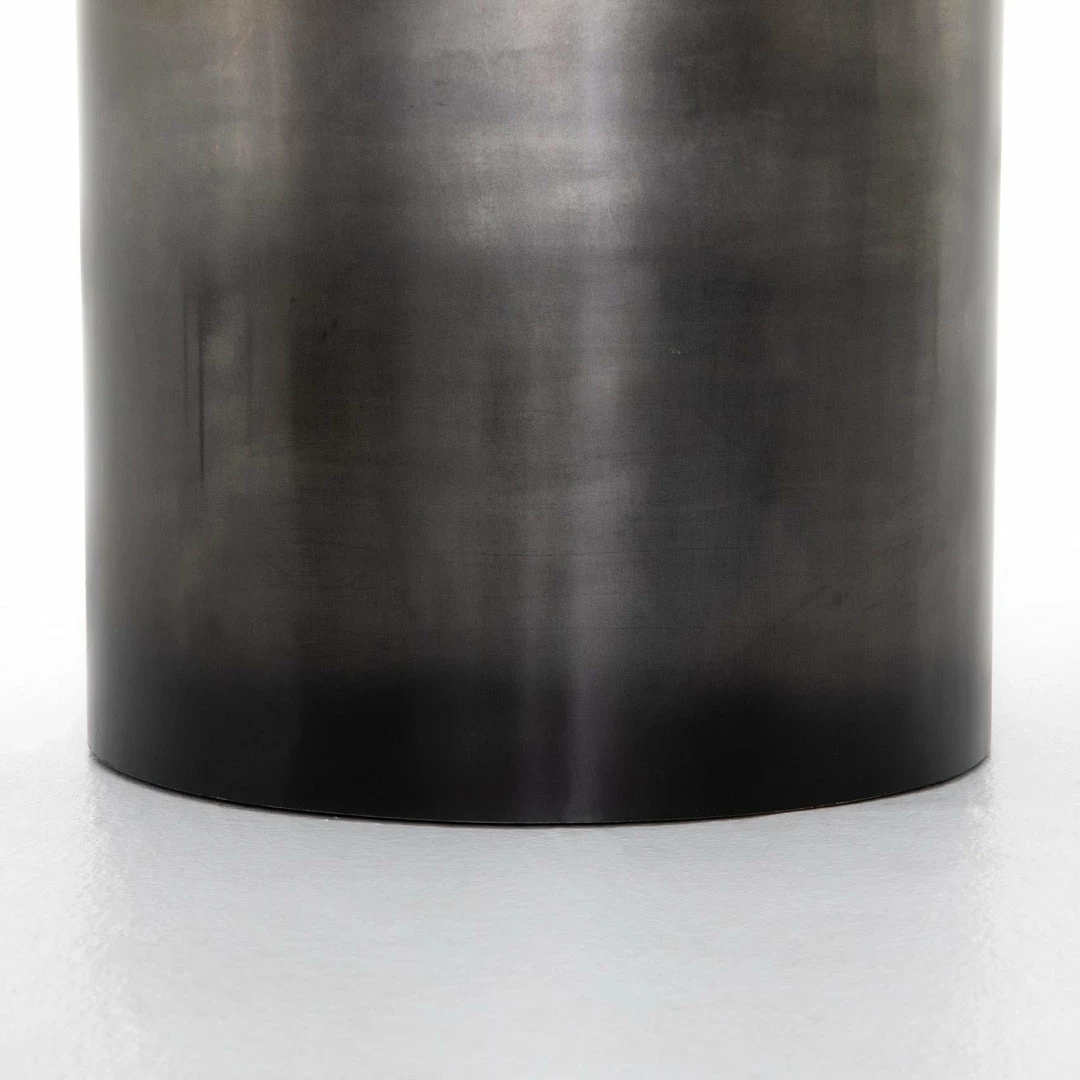 An antique brass finish highlights iron’s gradual blending of hues, delivering a distinctive ombre effect to the cylindrical end table. Great solo or in pairs.