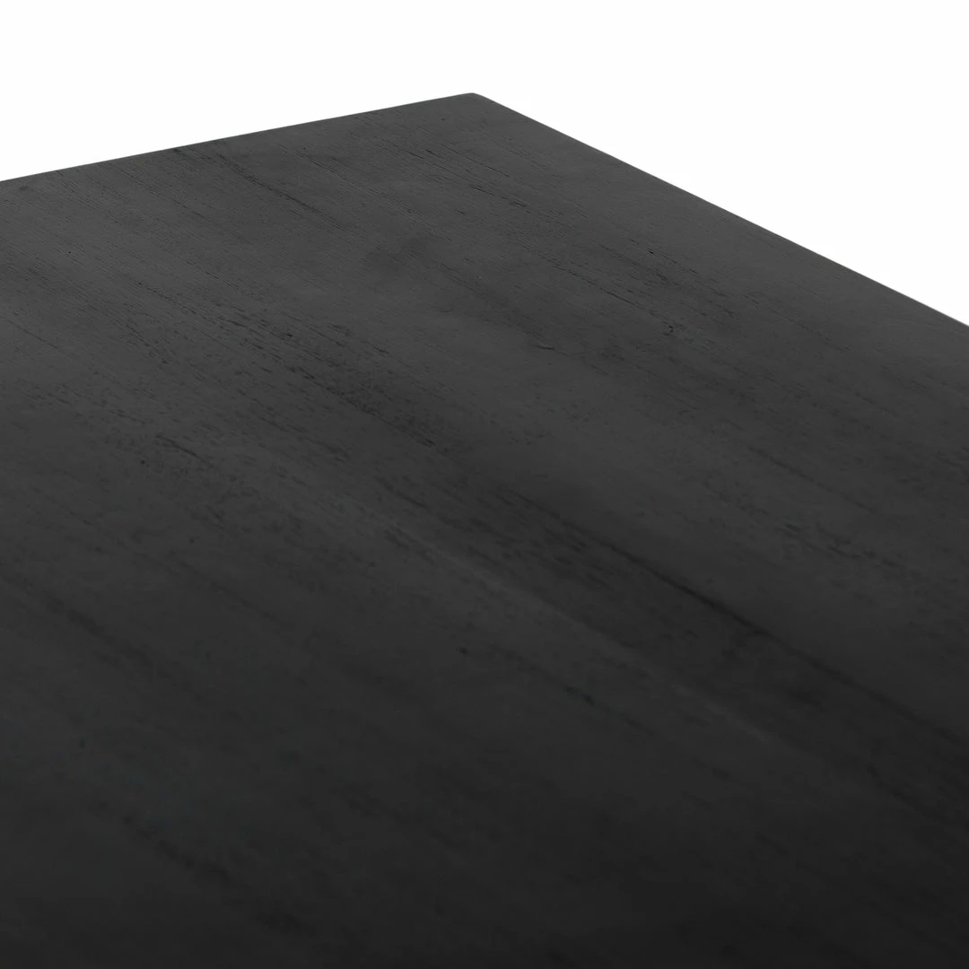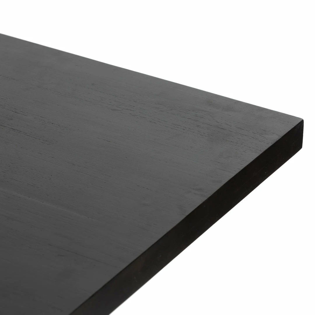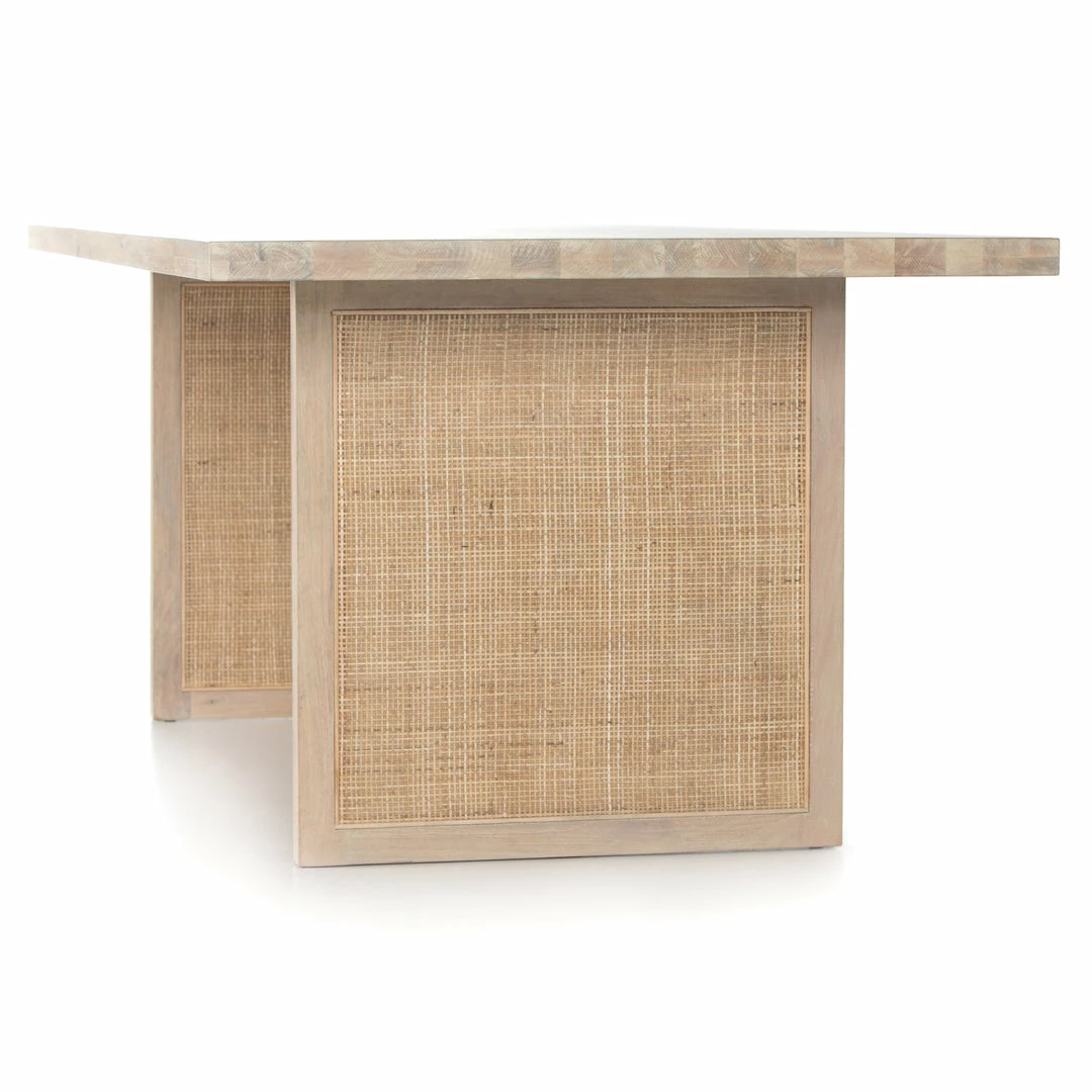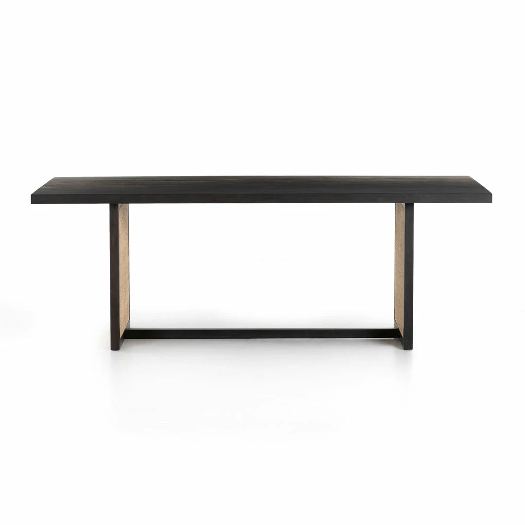 Stately and stylish, with plenty of mid-century spirit. Black-finished mango forms a structured ski-style dining table, featuring inset paneling of woven natural cane. Seats six comfortably.