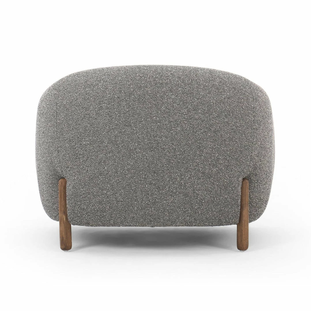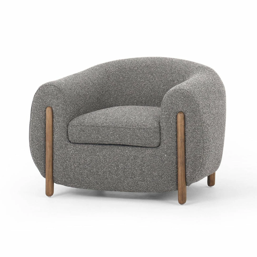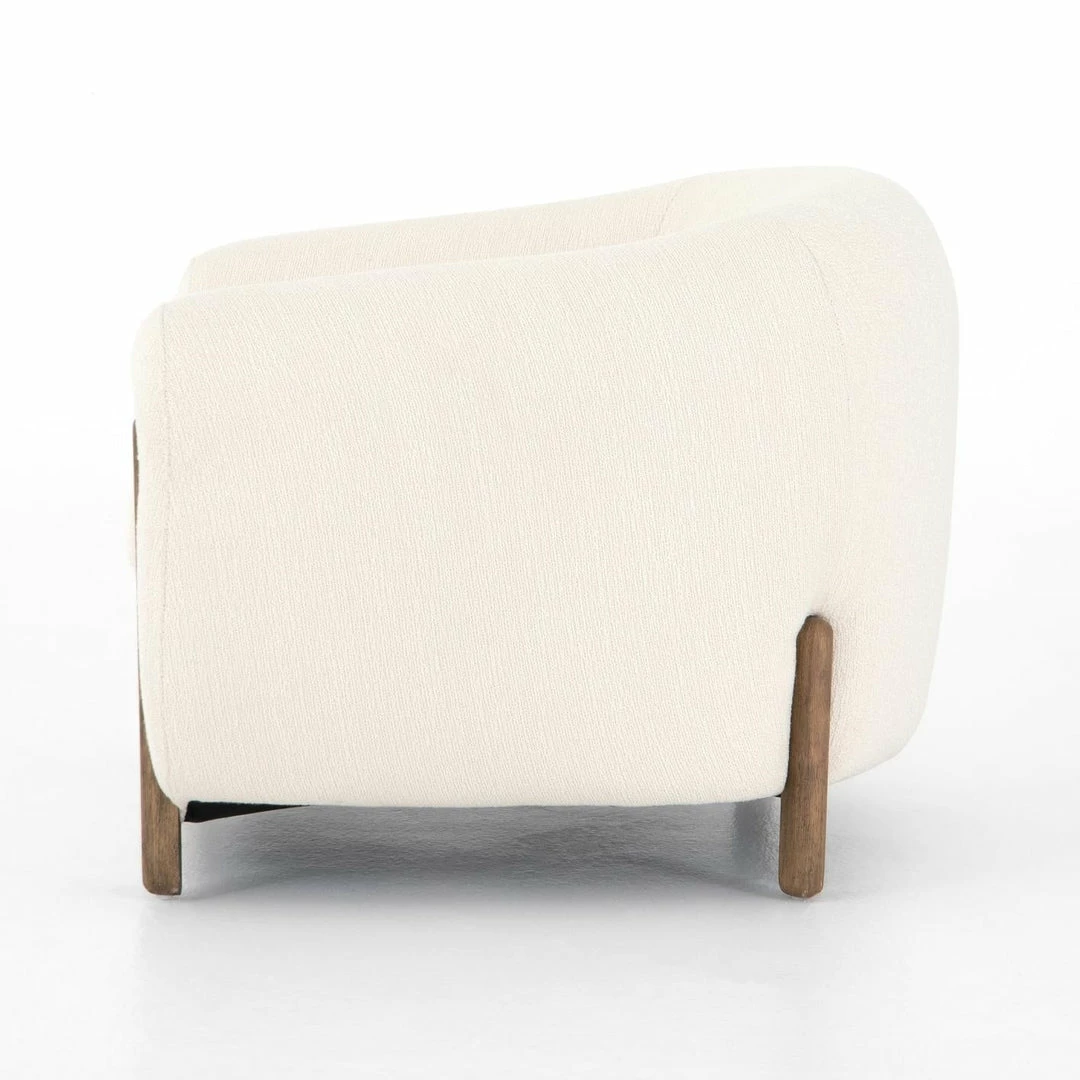 A fresh take on the traditional tub chair, with exaggerated depth for drama and comfort. Solid rubberwood legs intersect ivory upholstery for clean contrast of color and scale.