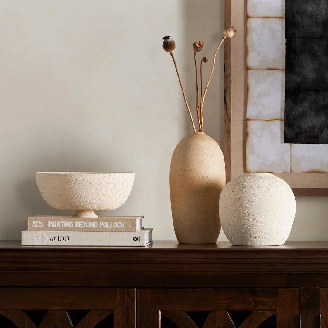 Inspired by a tradition that’s been kept alive for over a thousand years. This pedestal bowl is crafted from clay made in-house at a female-owned ceramic studio in western Mexico, and then shaped on a pottery wheel by hand. Features subtle imperfections, including grooves visible on the inside of each piece from the potter’s fingers, and beautiful finishes in natural earth tones for an organic look and feel on a truly one-of-a-kind piece.