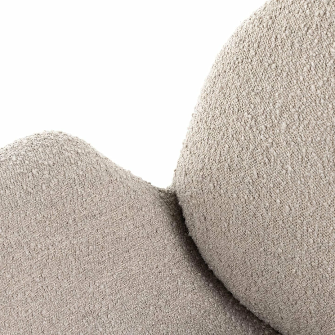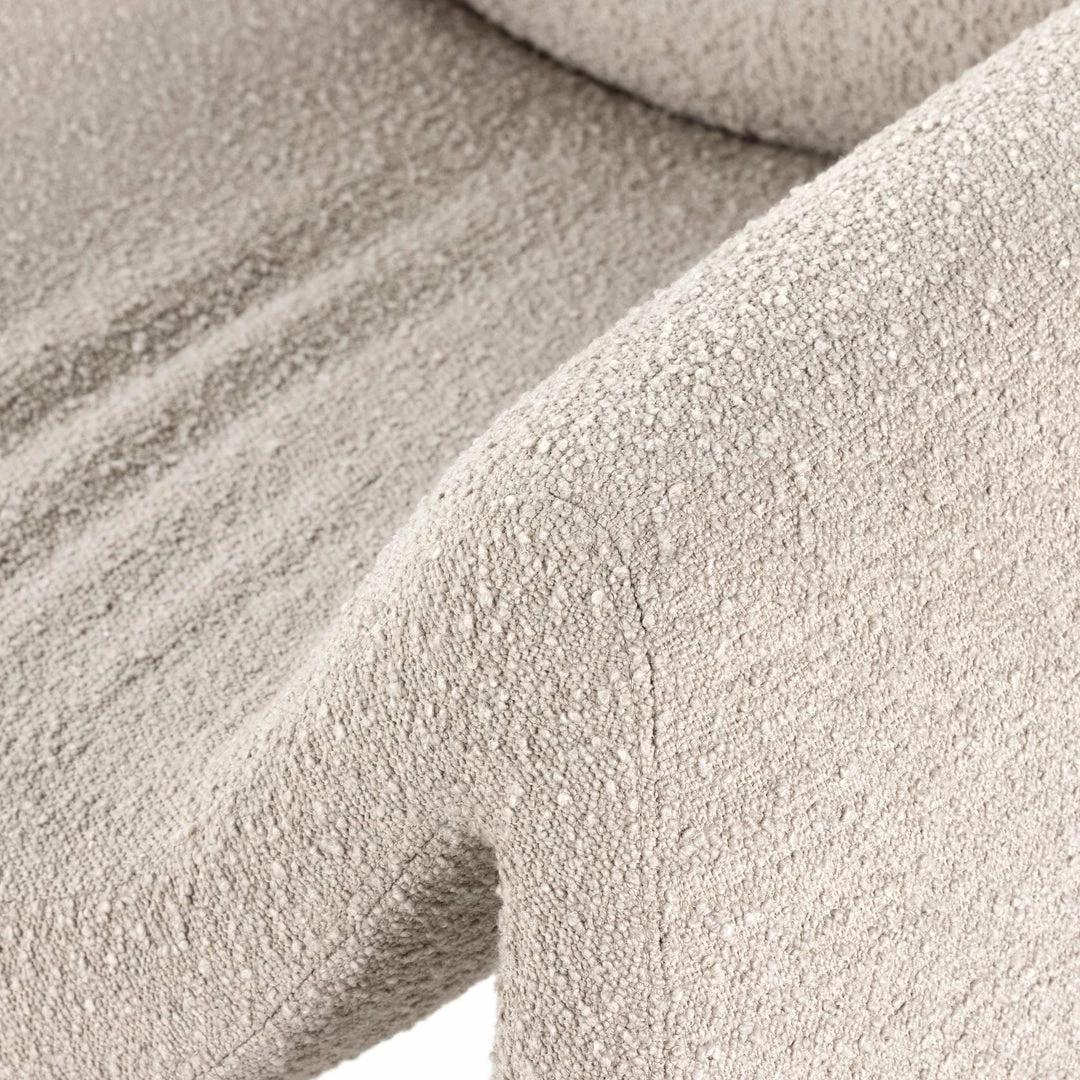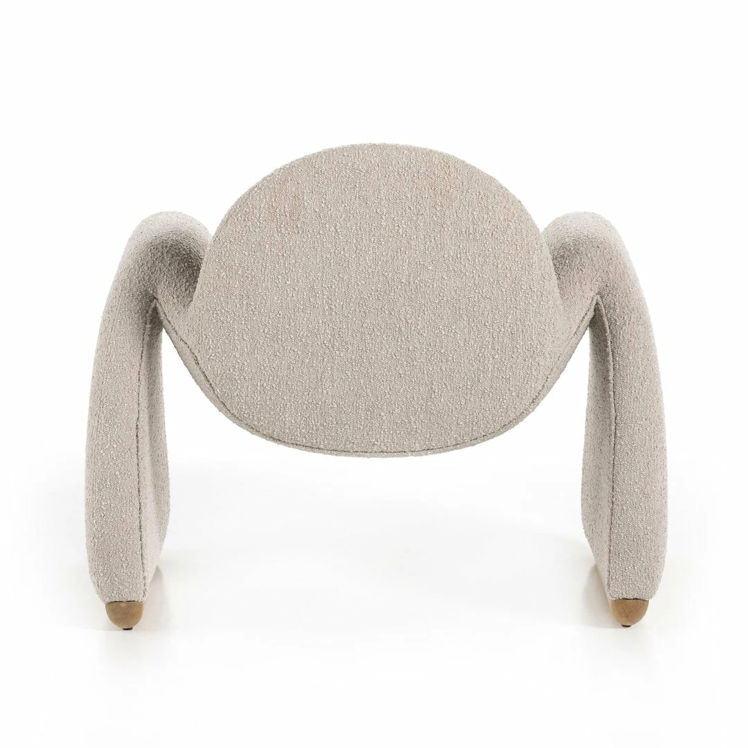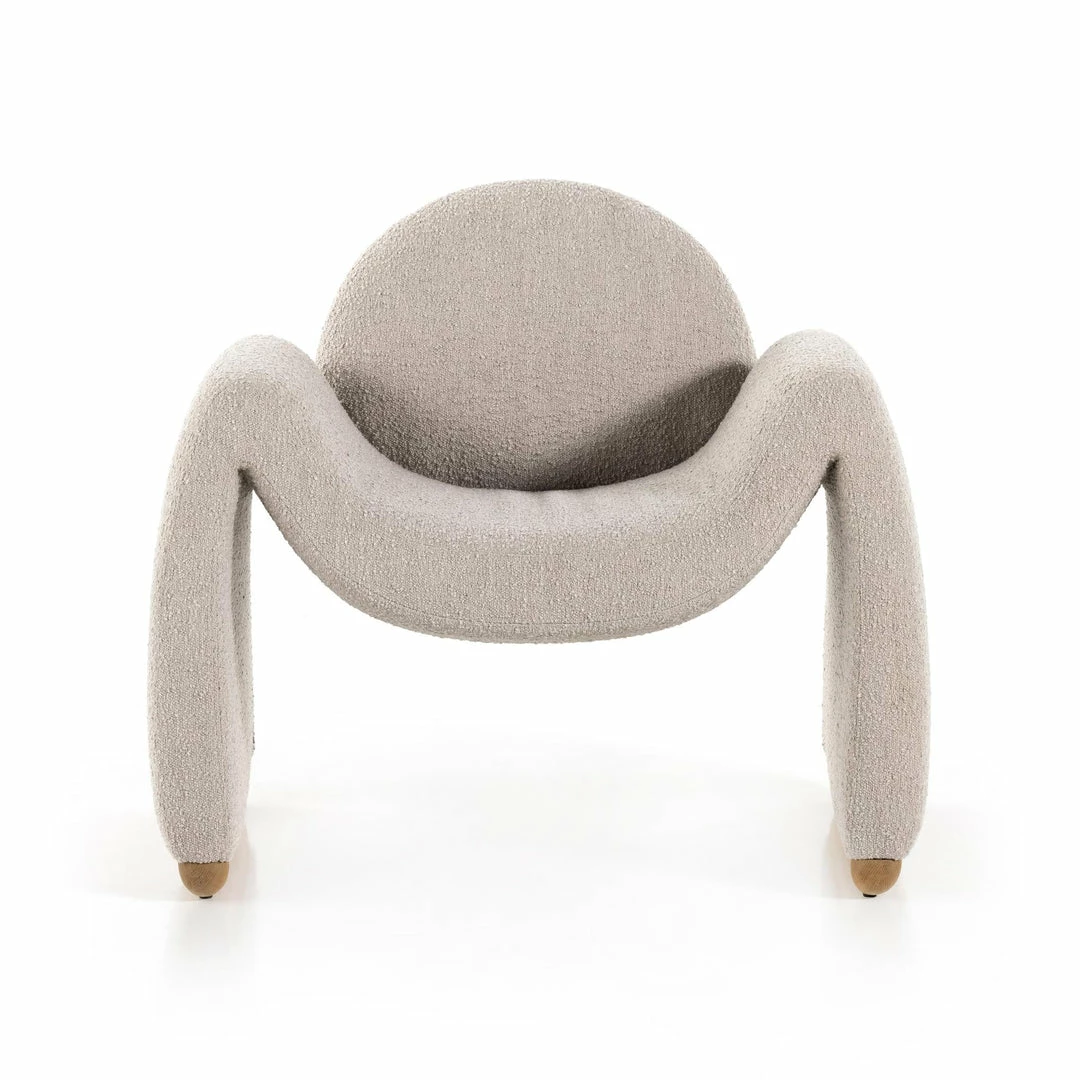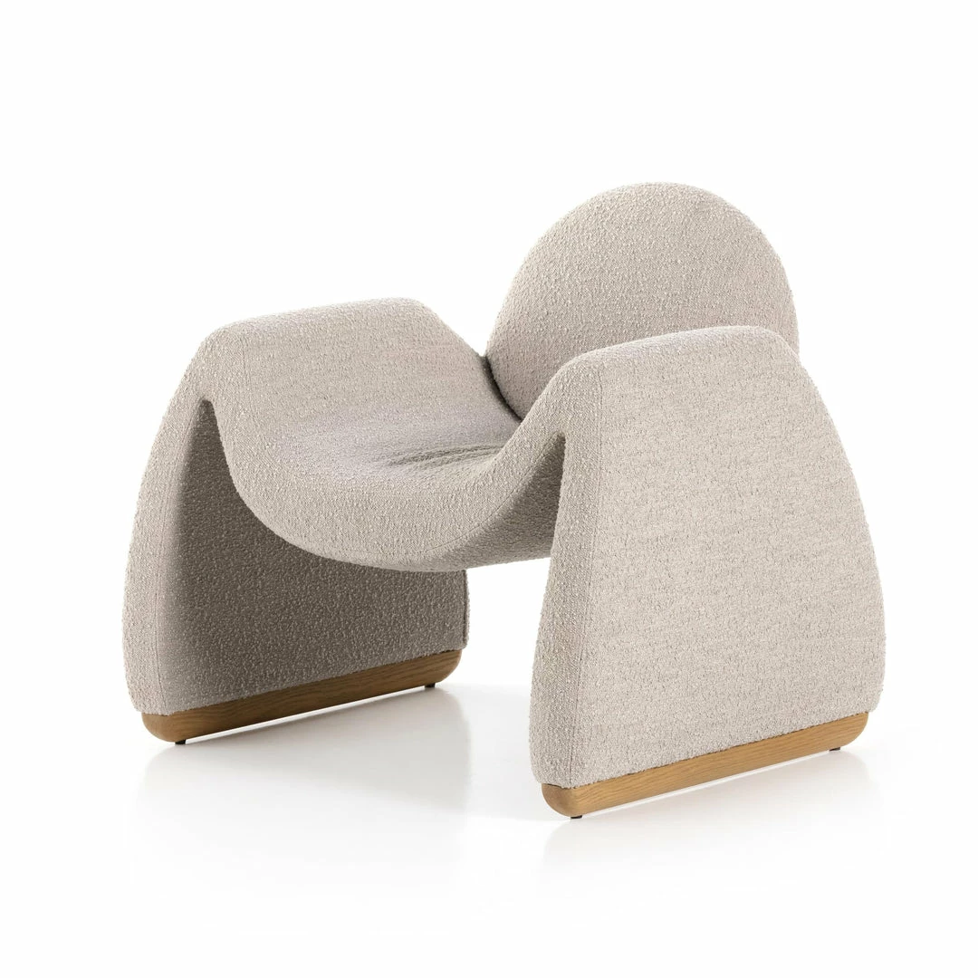 Bring some ’70s whimsy into play with a show-stopping accent chair. Made from high-performance fabric in a sandy boucle, dramatic shaping features fashionable folds and comfortable curves atop a minimal oak base.