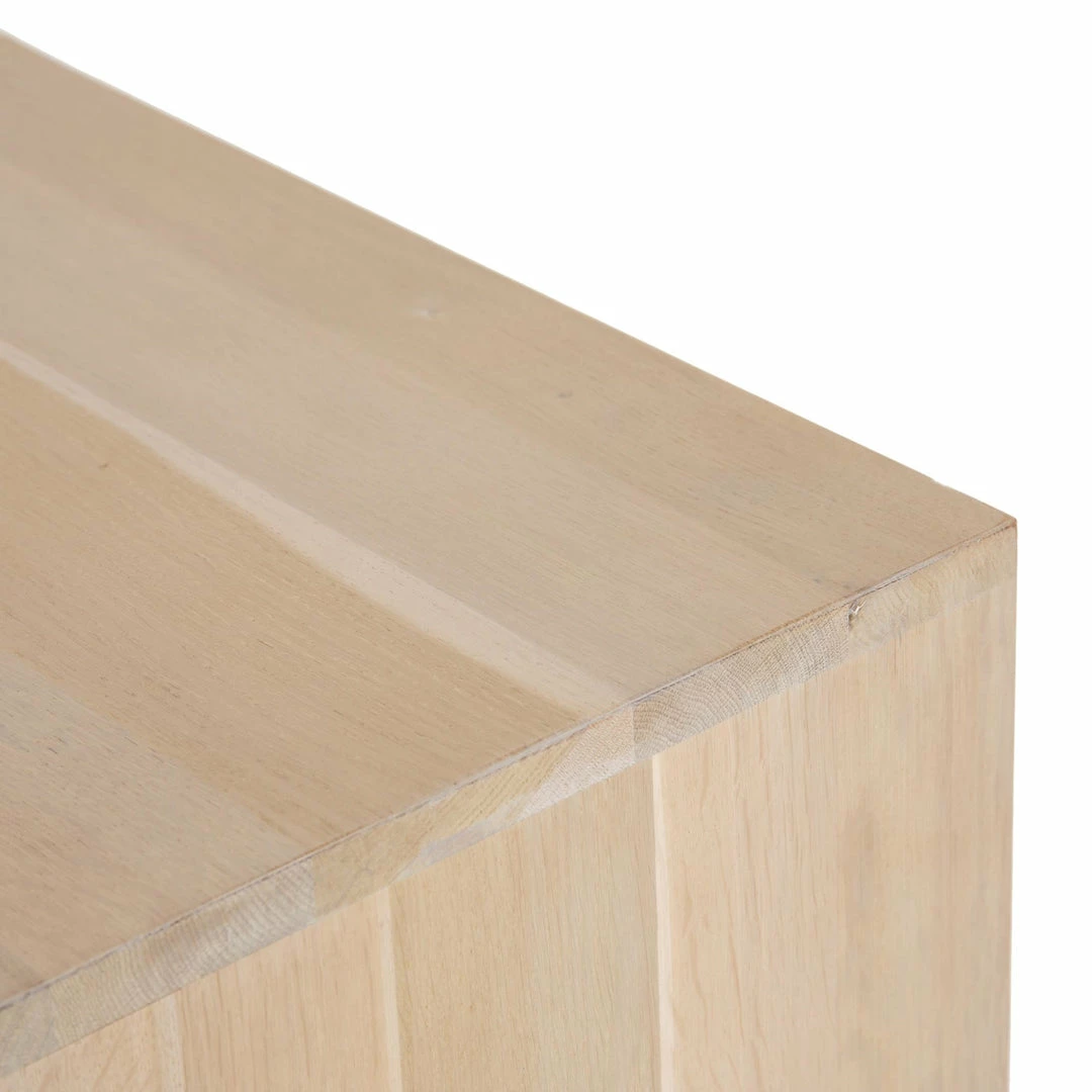 A fresh, feminine take on mid-century styling. A pale-washed mango console features oak door fronts and inset layer of white marble with subtle pink and green veining mixed to beautiful effect. Finished in an antique brass, arched iron legs add a dash of modernity, while drop-down center cubbies plus side cabinets offer ample media storage. Rear cutouts for cord management.
