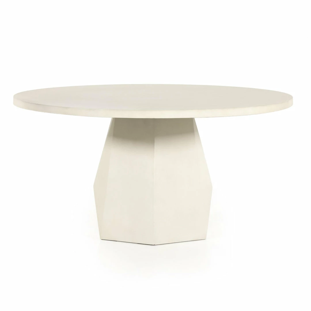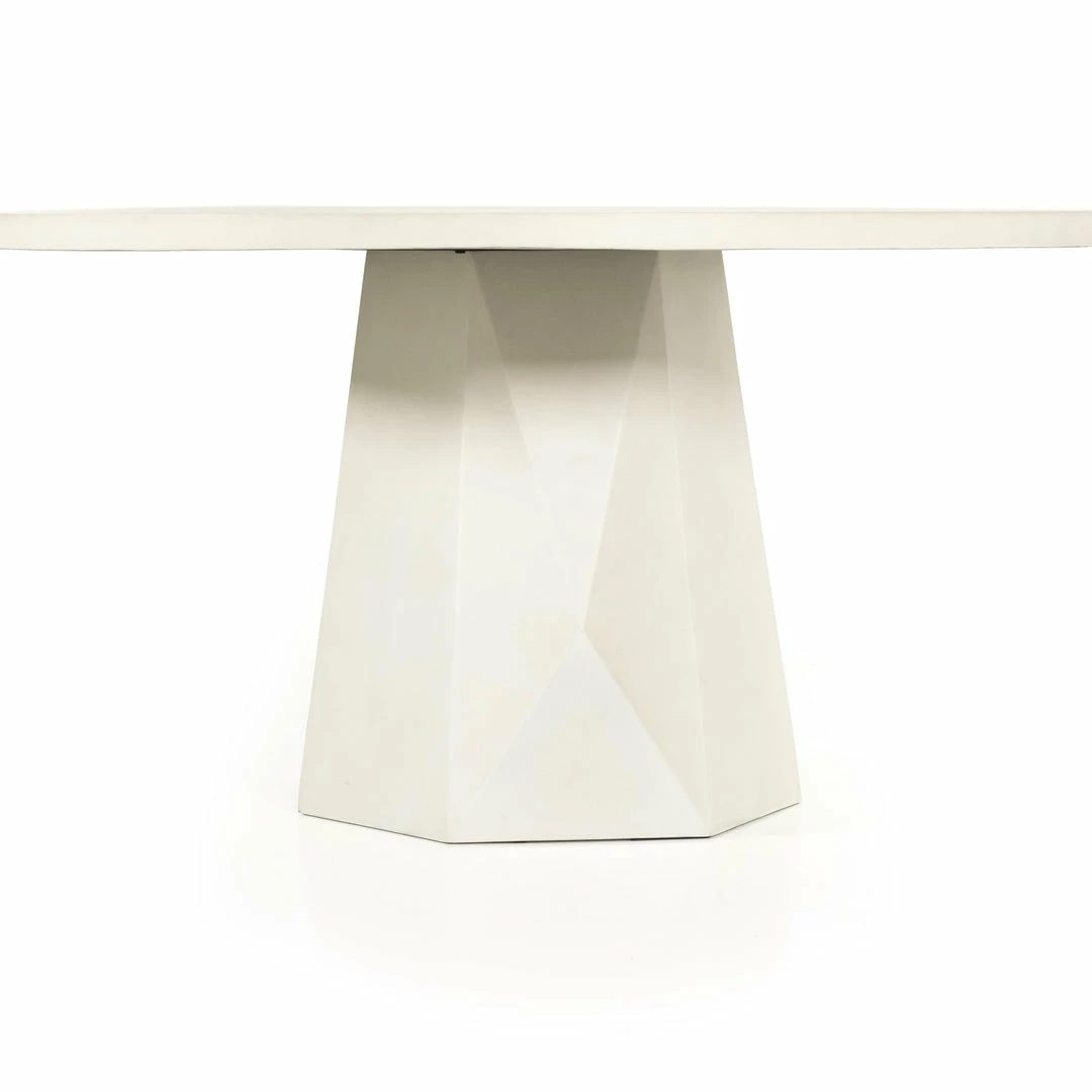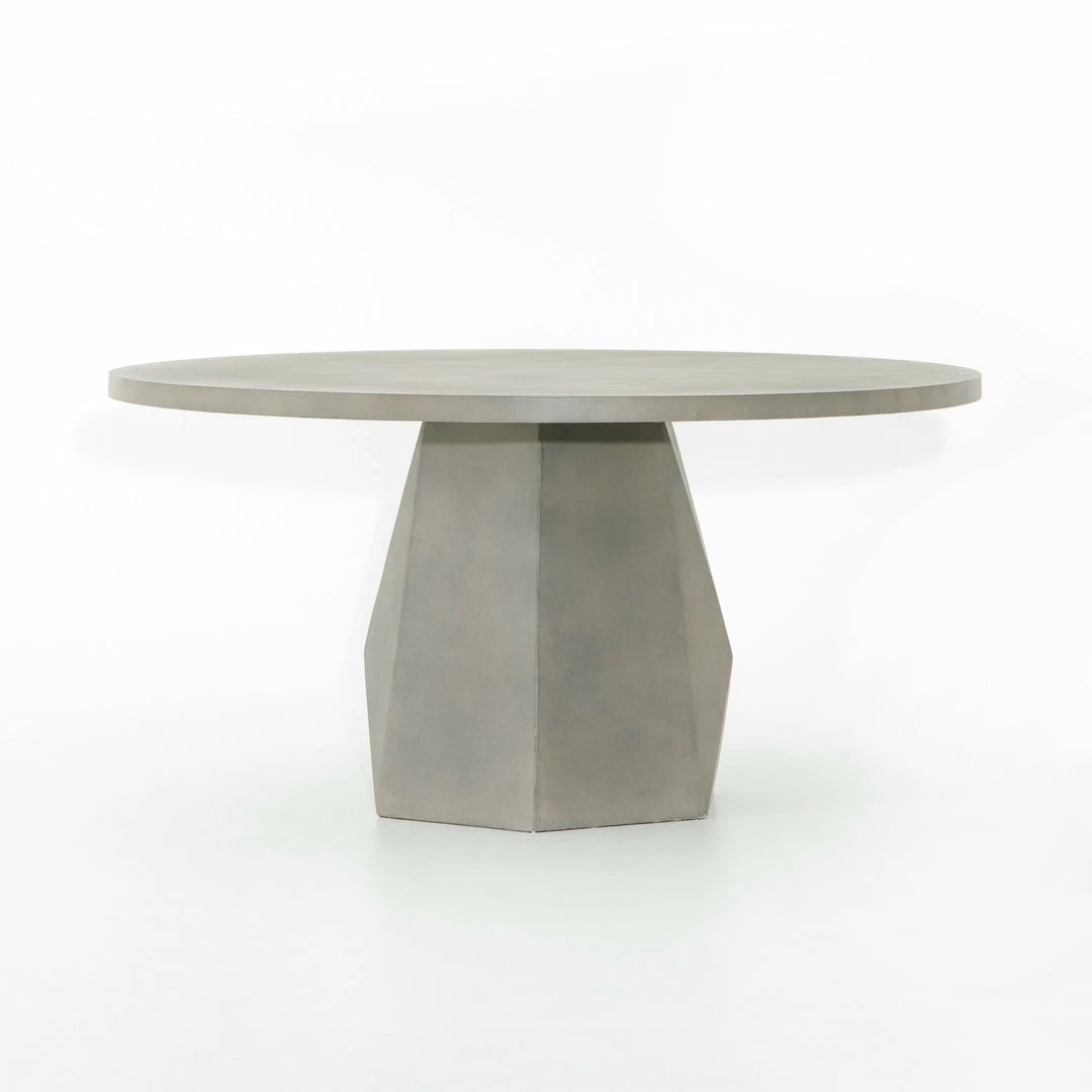 Grey-finished concrete forms a faceted base for impact from every angle. A roomy, rounded top is ready to welcome guests indoors or out. Cover or store inside during inclement weather and when not in use.