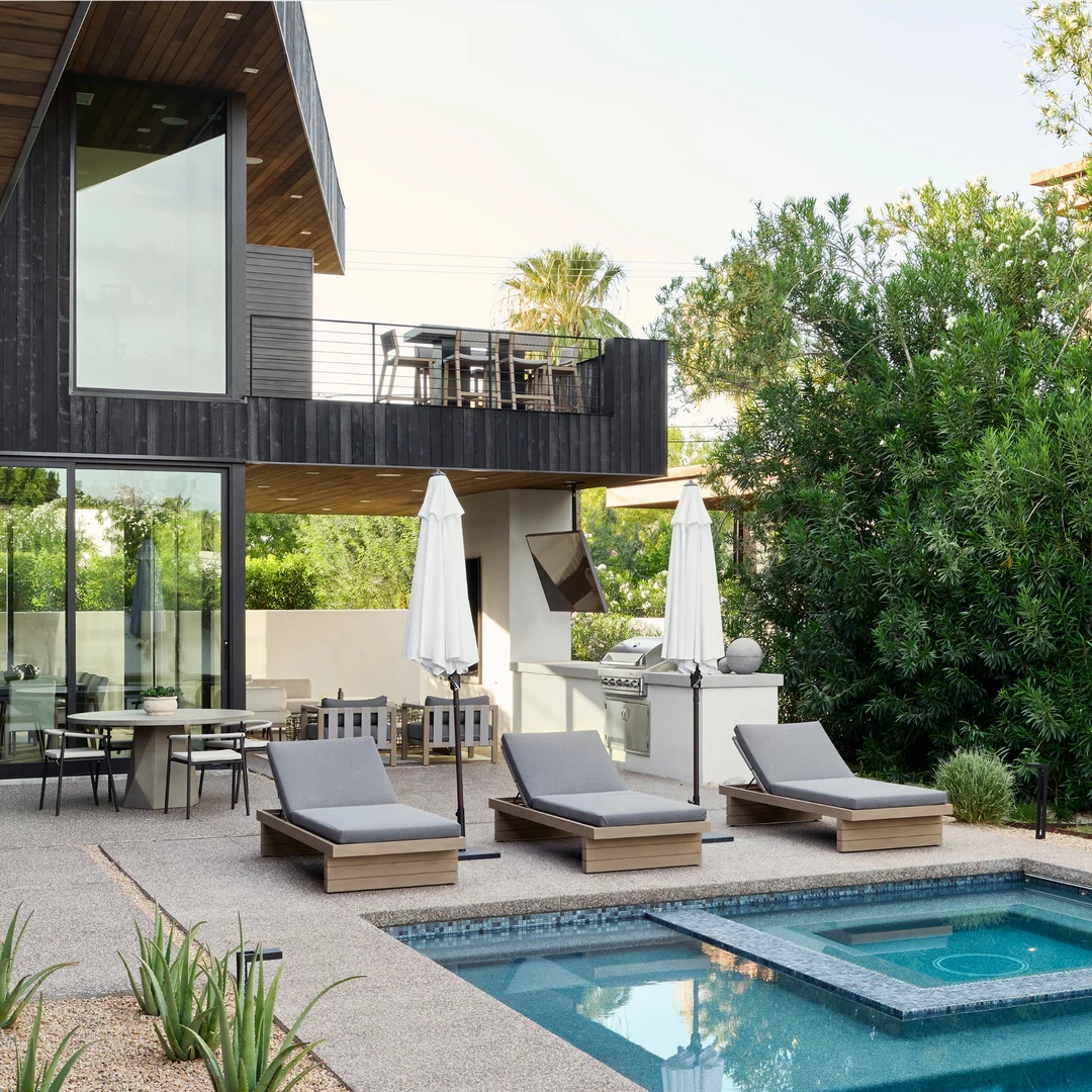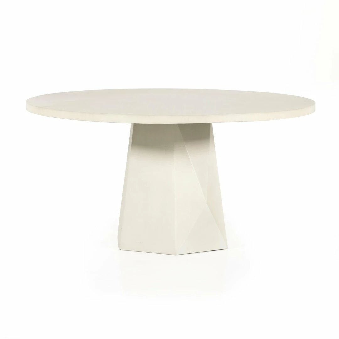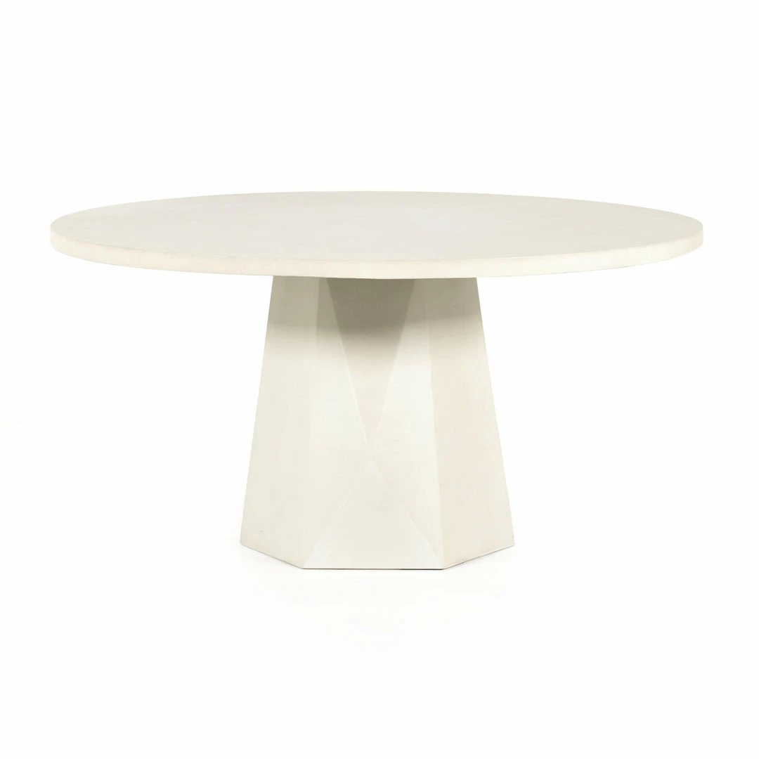 Grey-finished concrete forms a faceted base for impact from every angle. A roomy, rounded top is ready to welcome guests indoors or out. Cover or store inside during inclement weather and when not in use.