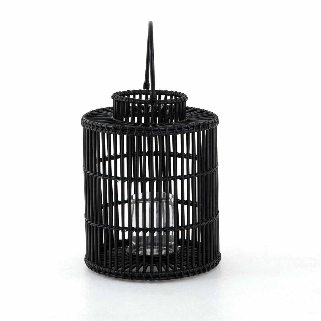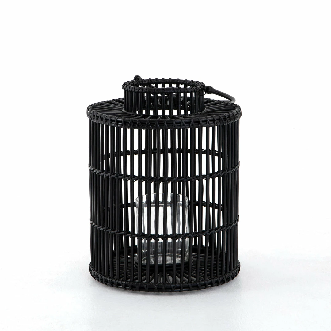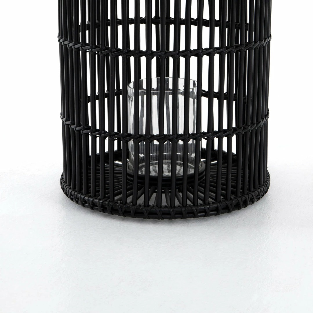 Radiate cozy candlelight through black-finished rattan framing, while bringing a global, bohemian vibe to intimate dinners and social gatherings alike. Interior clear glass votive included.