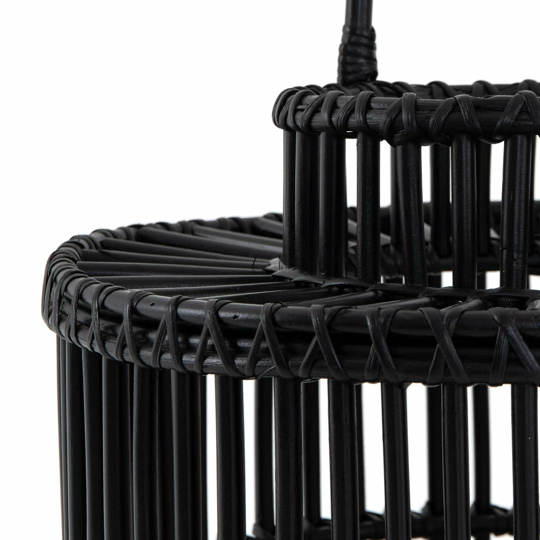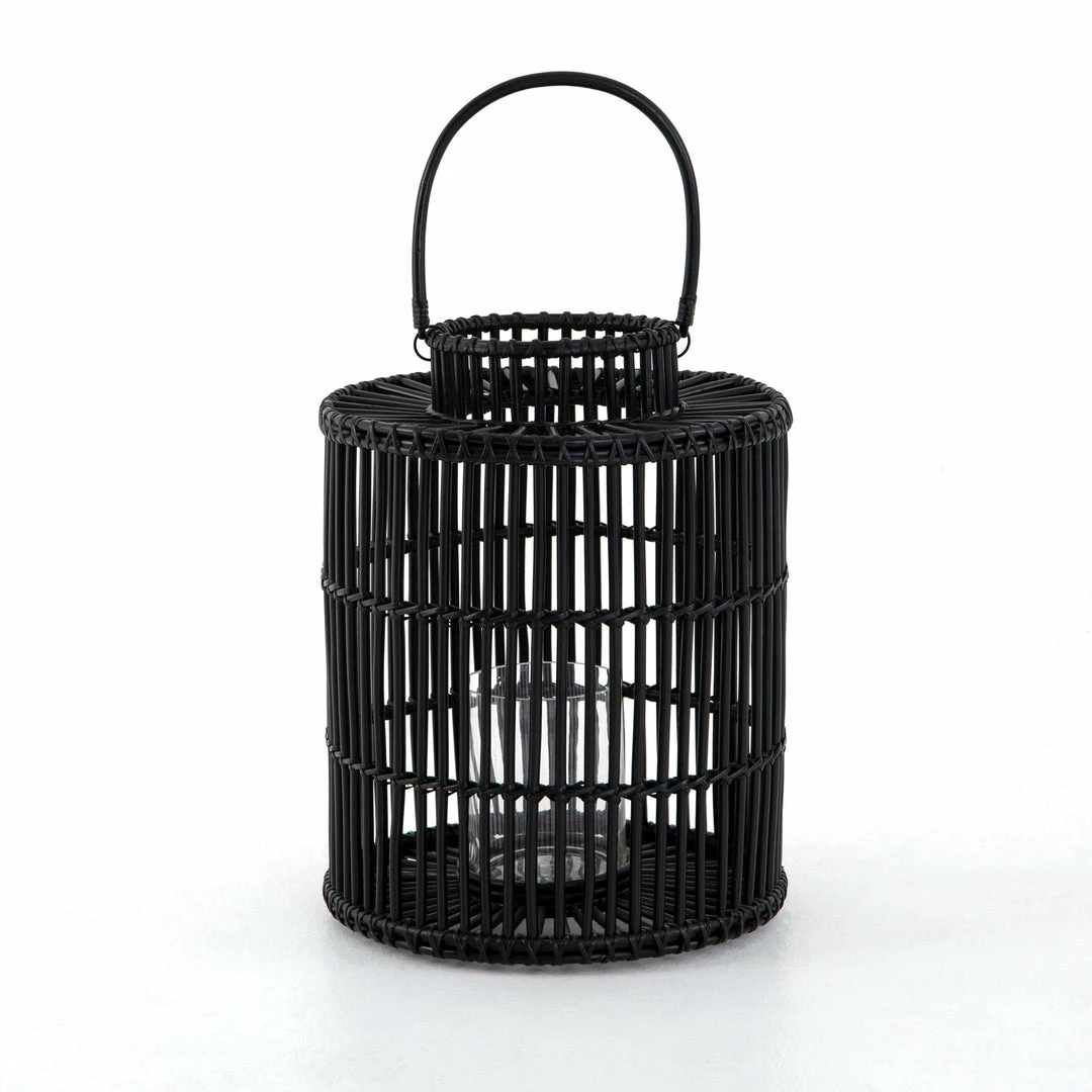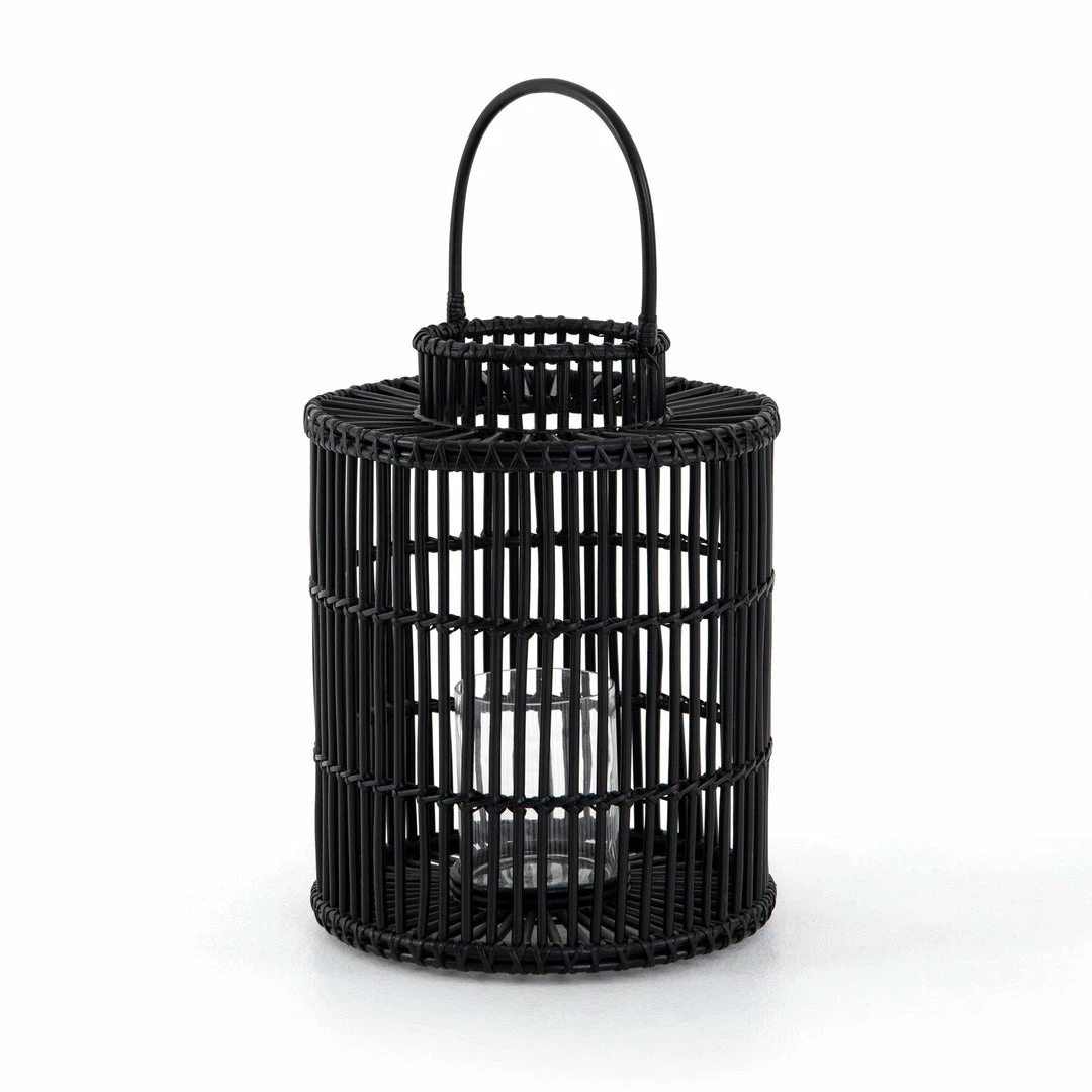 Radiate cozy candlelight through black-finished rattan framing, while bringing a global, bohemian vibe to intimate dinners and social gatherings alike. Interior clear glass votive included.