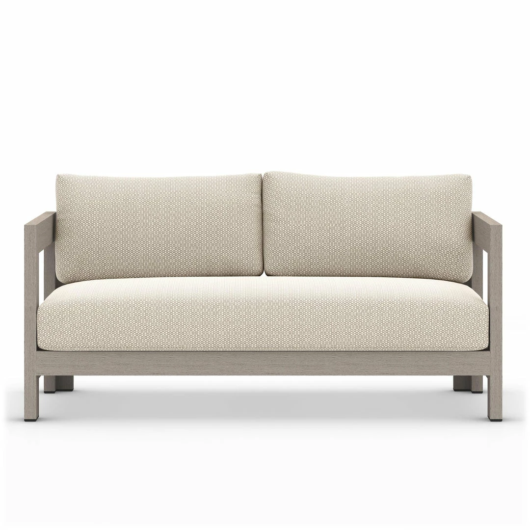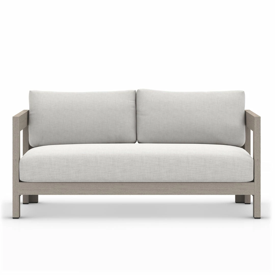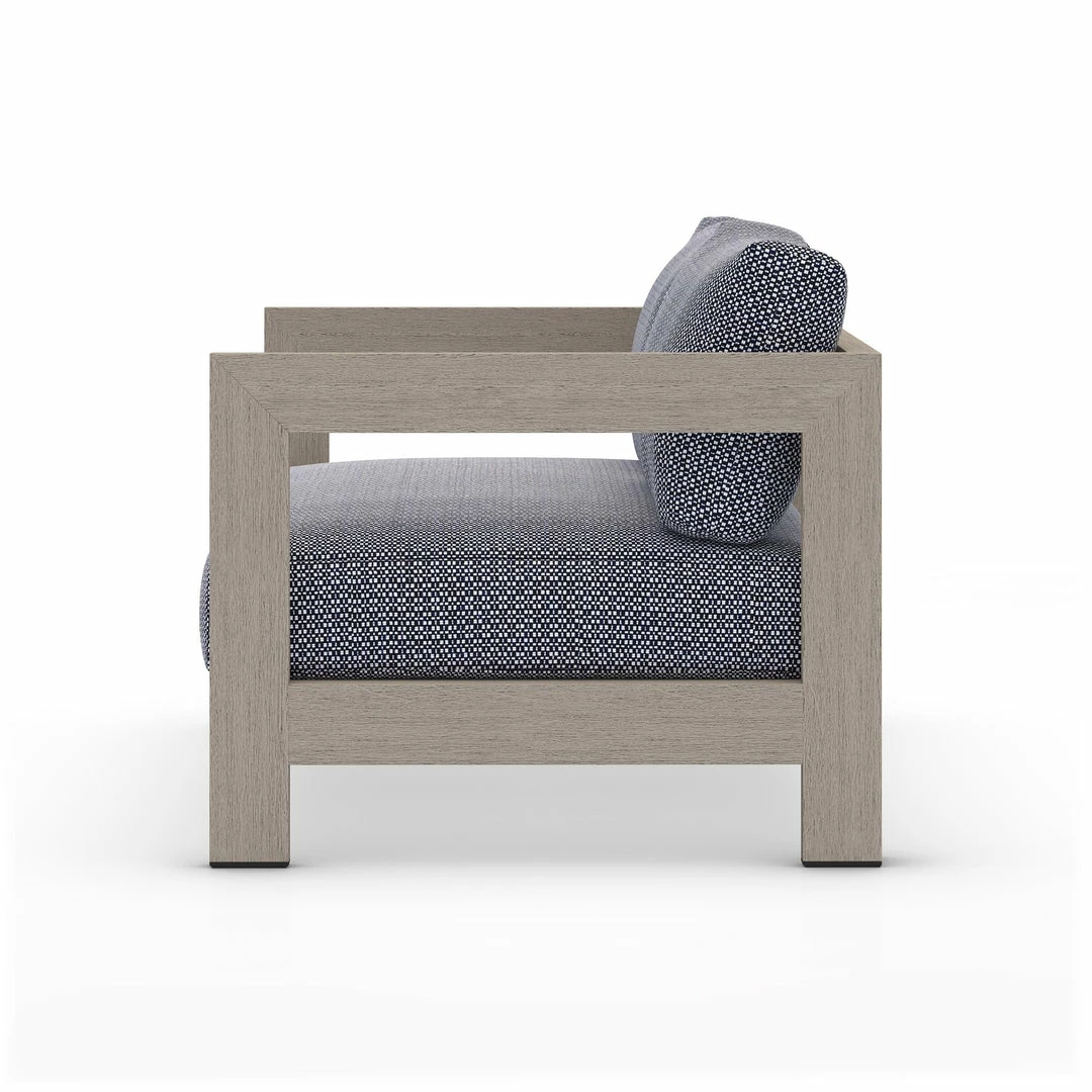 Modern materials ready a sophisticated silhouette for the outdoors. FSC-certified teak forms a clean, wide frame for UV-resistant and water-repellent fabric. Cover or store inside during inclement weather and when not in use.