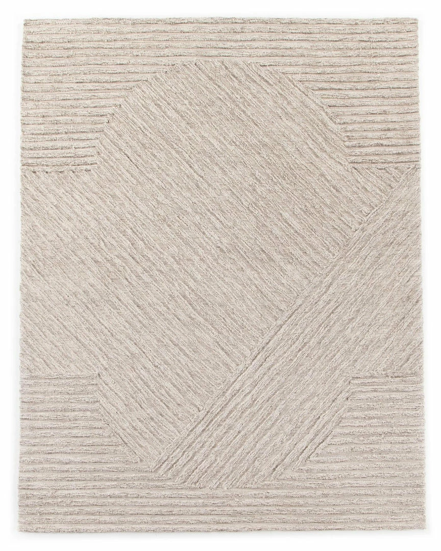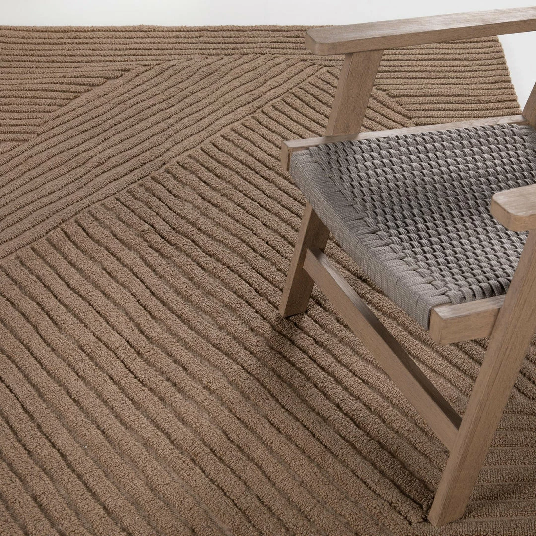 Made entirely from recycled materials, linear patterns plus a high/low pile contrast works a high-texture look to outdoor styling. Store inside during inclement weather and when not in use.