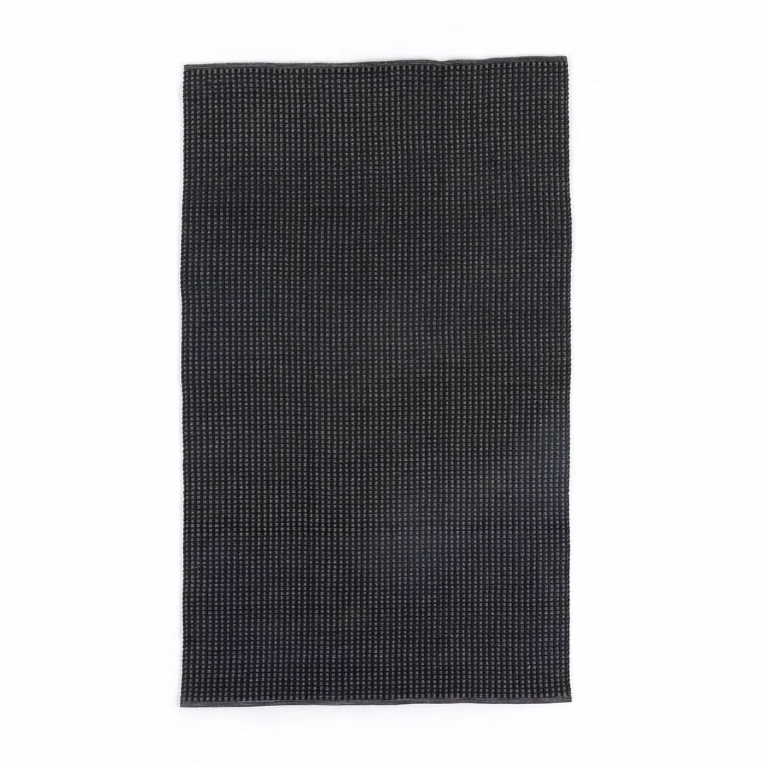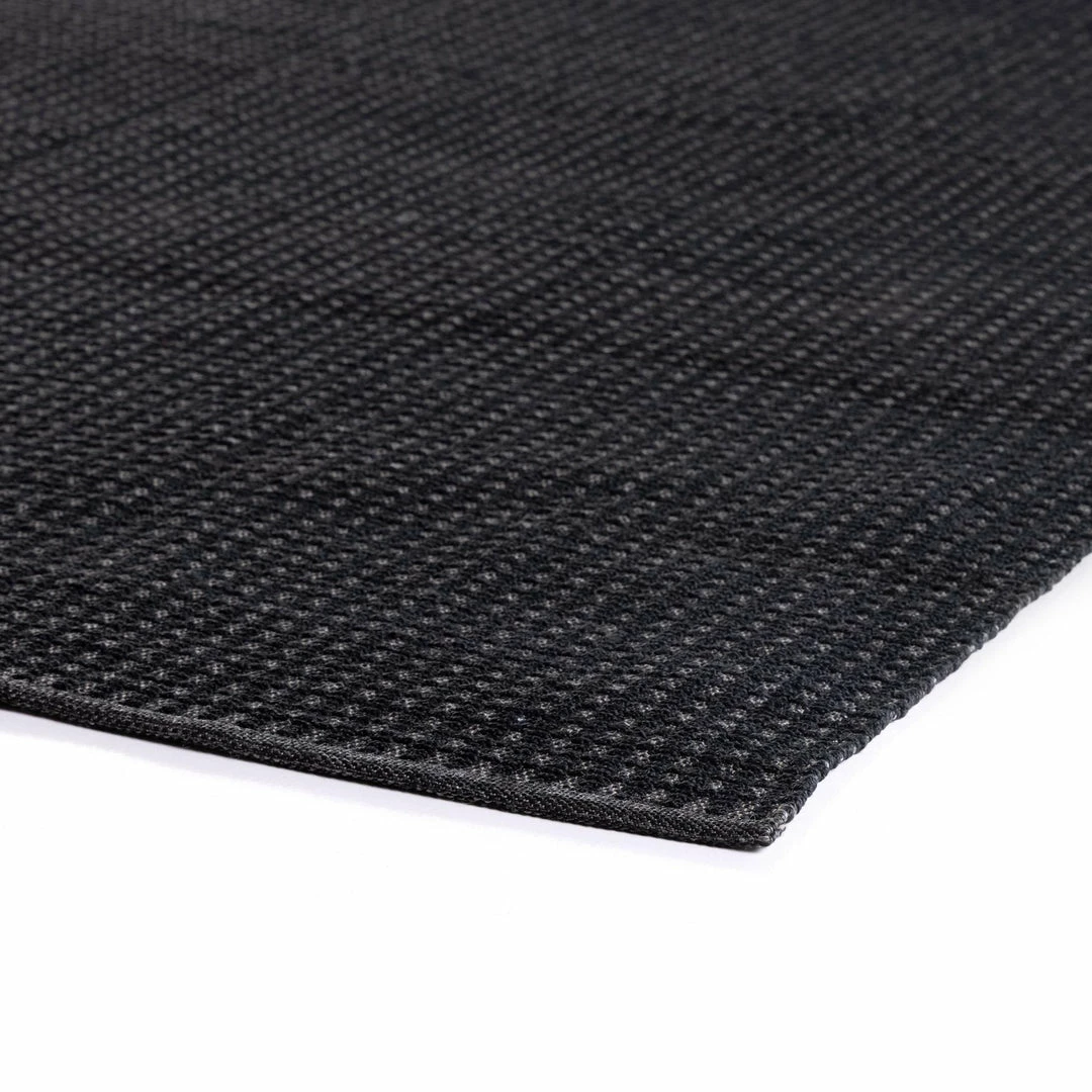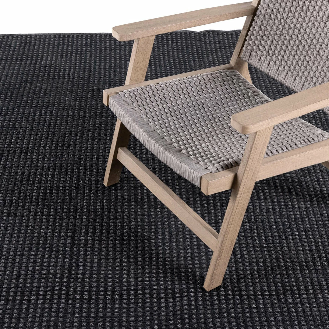 Layer in texture, indoors or out. An outdoor-friendly rug features a crosshatch pattern of gray and black hues for striking contrast in any outdoor space. Store inside during inclement weather.