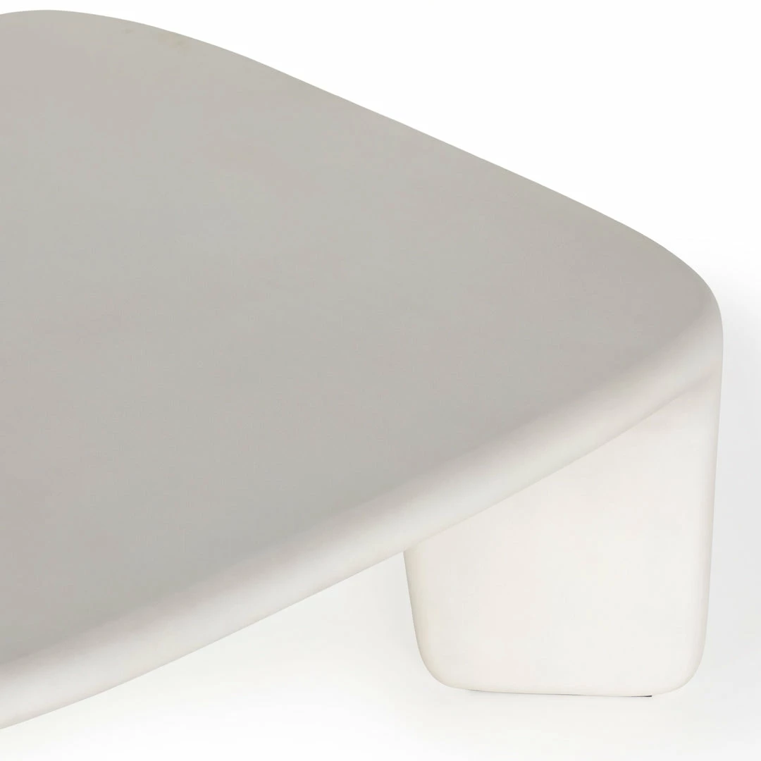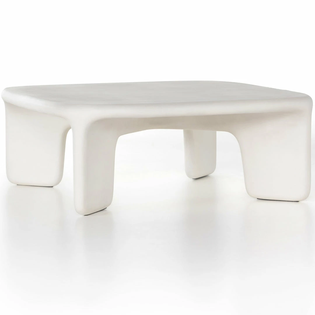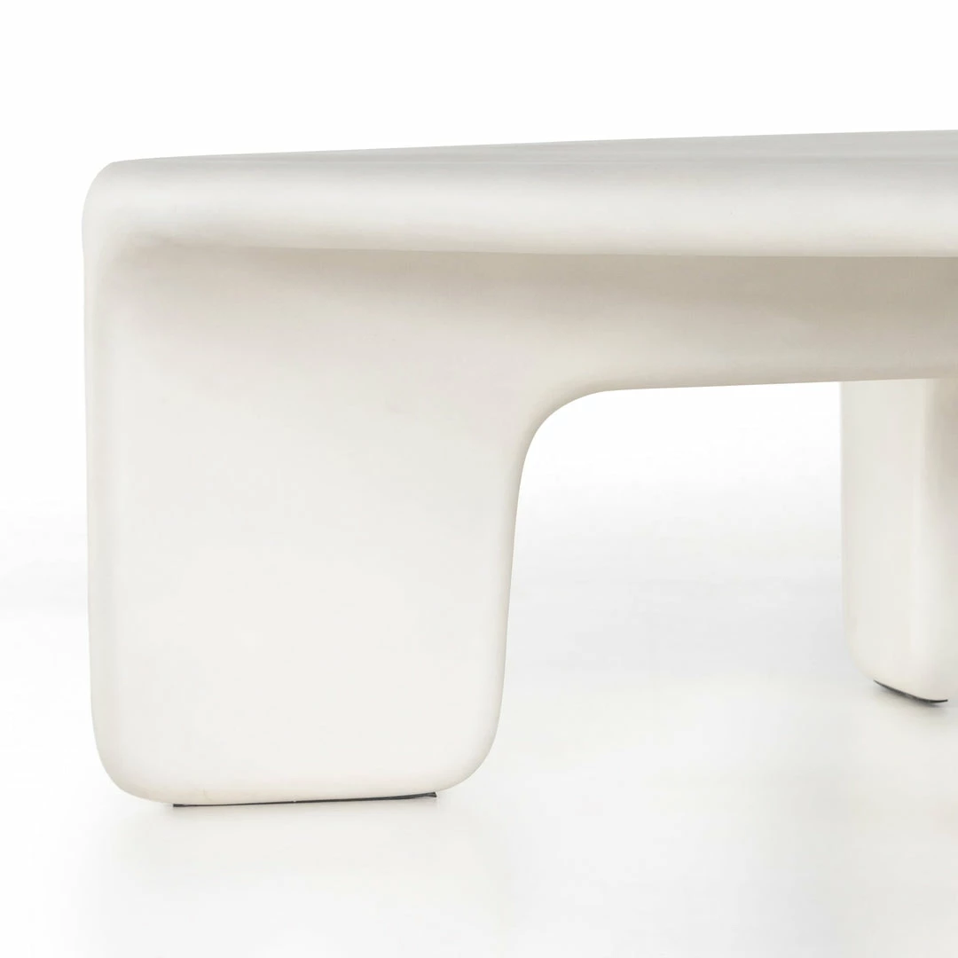 Adobe vibes. Made entirely from white-finished cast concrete, soft, chunky proportions lend a look of depth to this voluminous, uniquely sculpted coffee table.