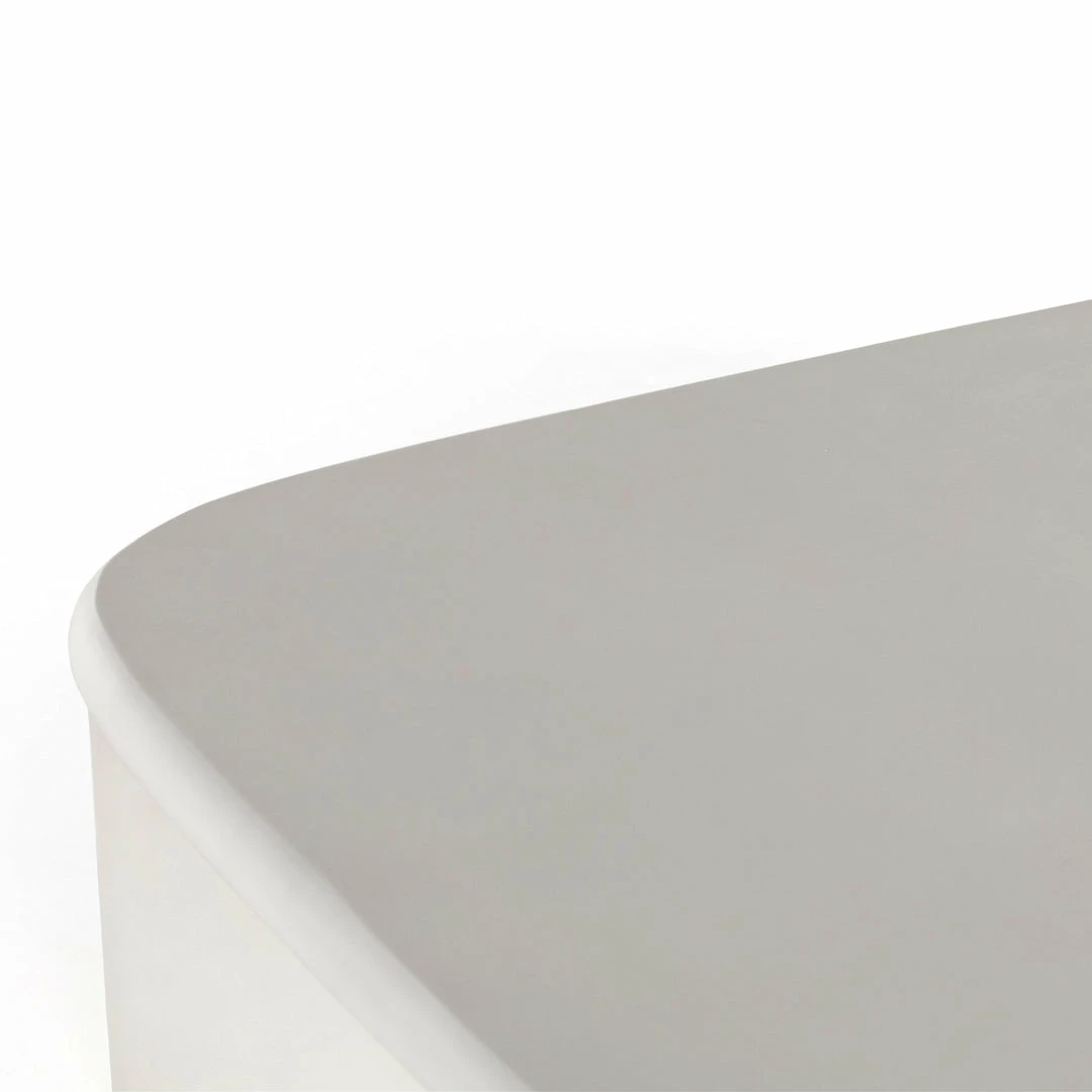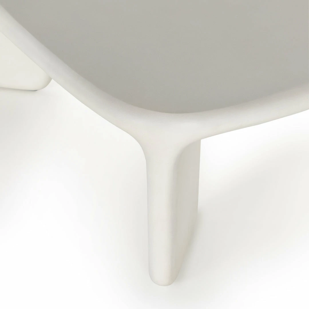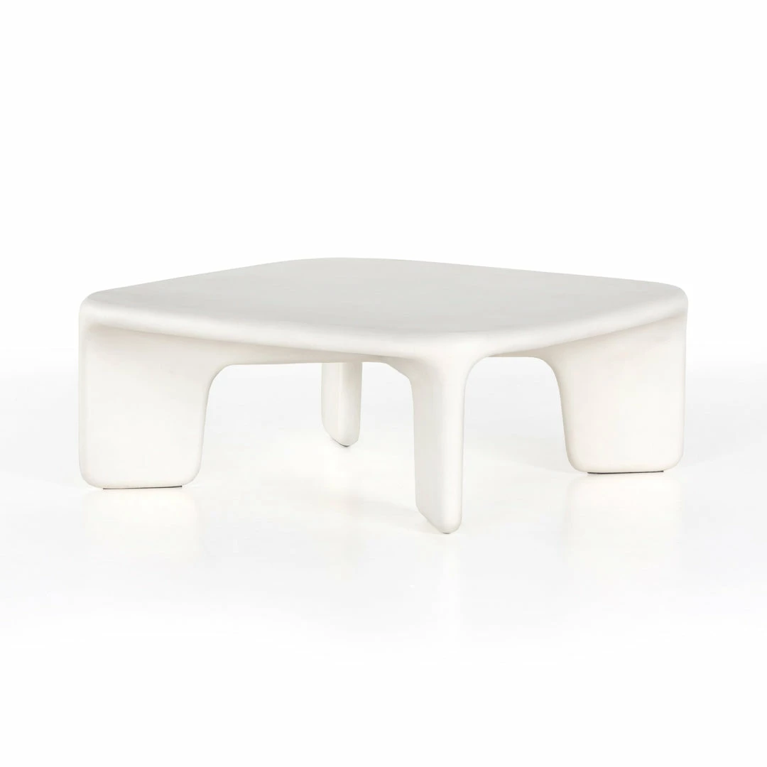 Adobe vibes. Made entirely from white-finished cast concrete, soft, chunky proportions lend a look of depth to this voluminous, uniquely sculpted coffee table.