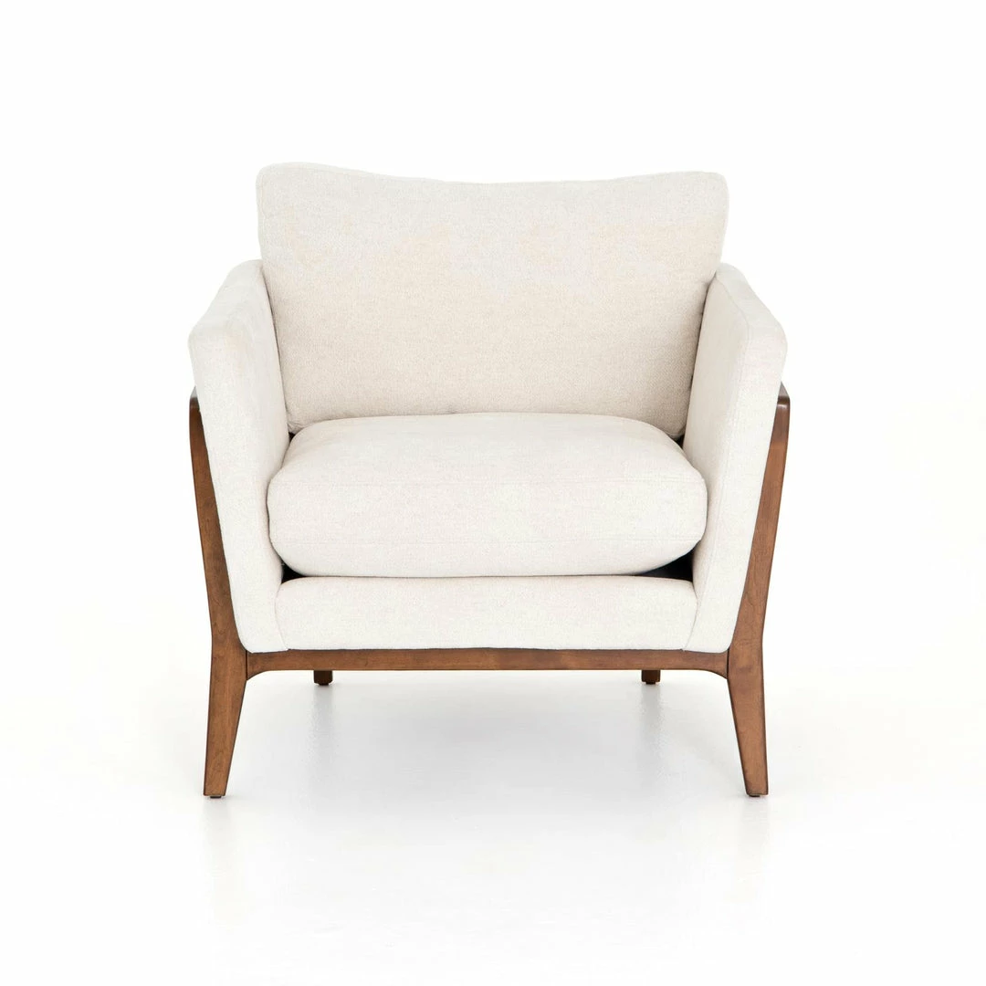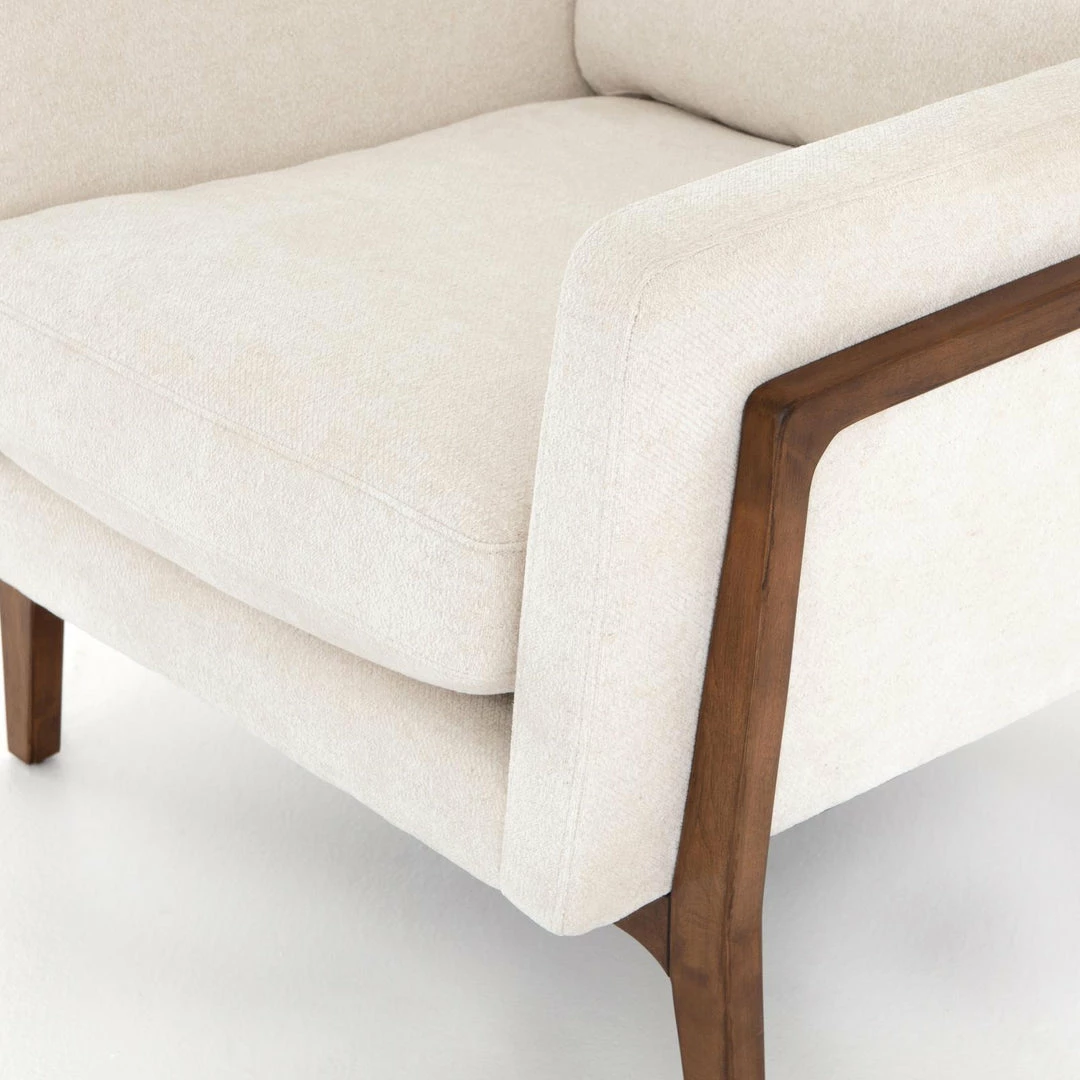 Simple, streamlined beauty from all angles. Pecan-finished birch wood cleanly cradles ivory linen-blend seating, for a sophisticated look with fresh two-tone allure.