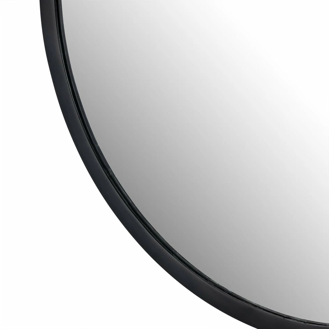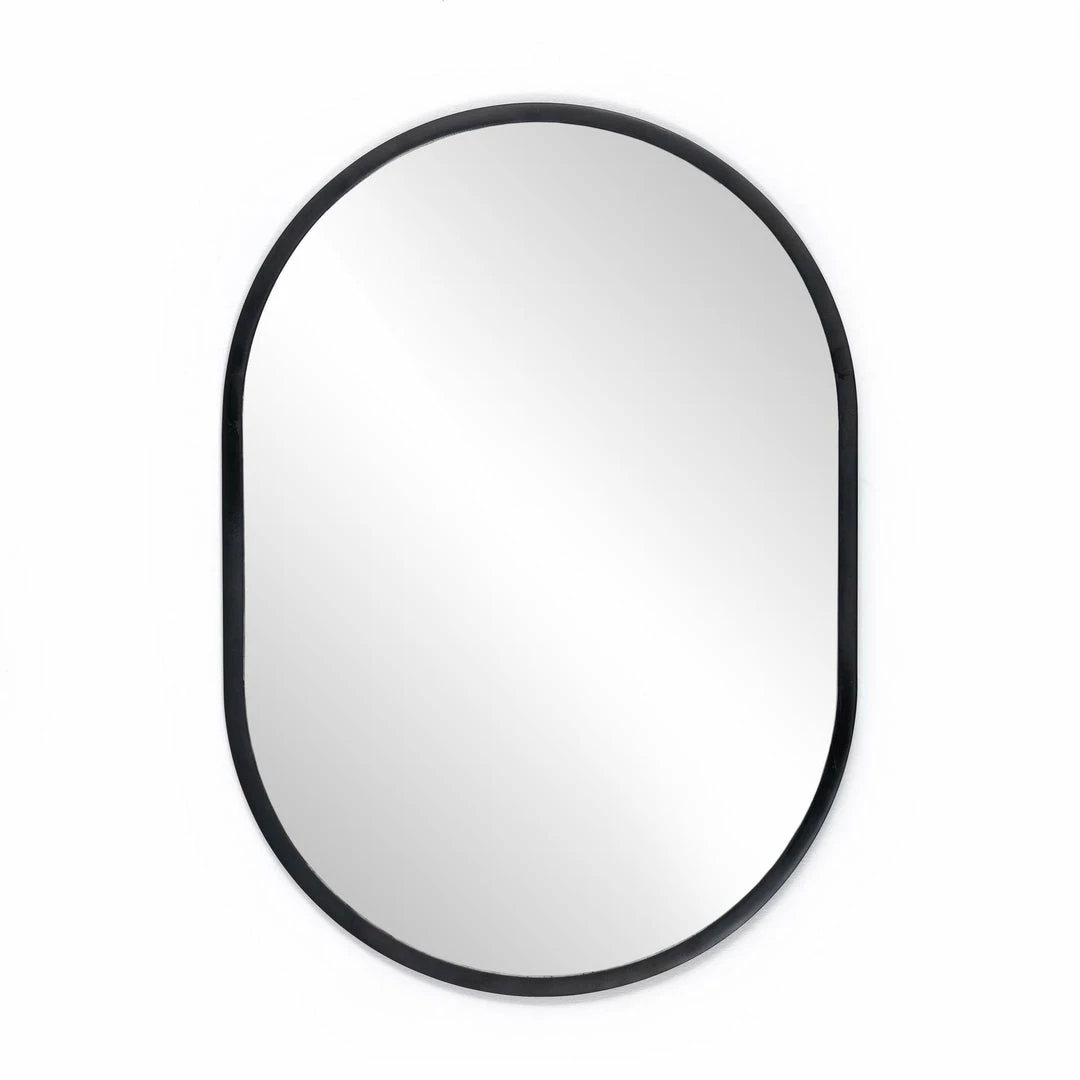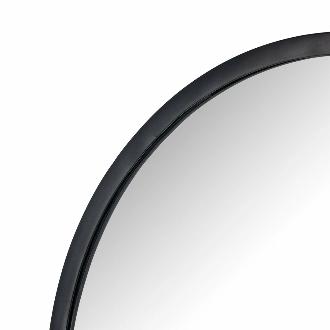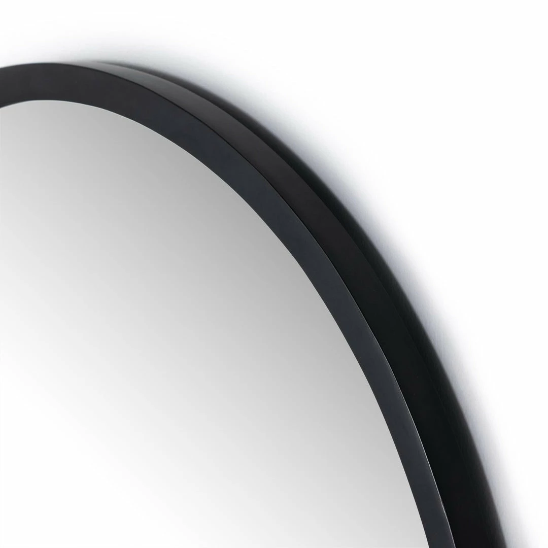 A classic rounded mirror is framed in iron with a matte black finish. Hang solo or in multiples.