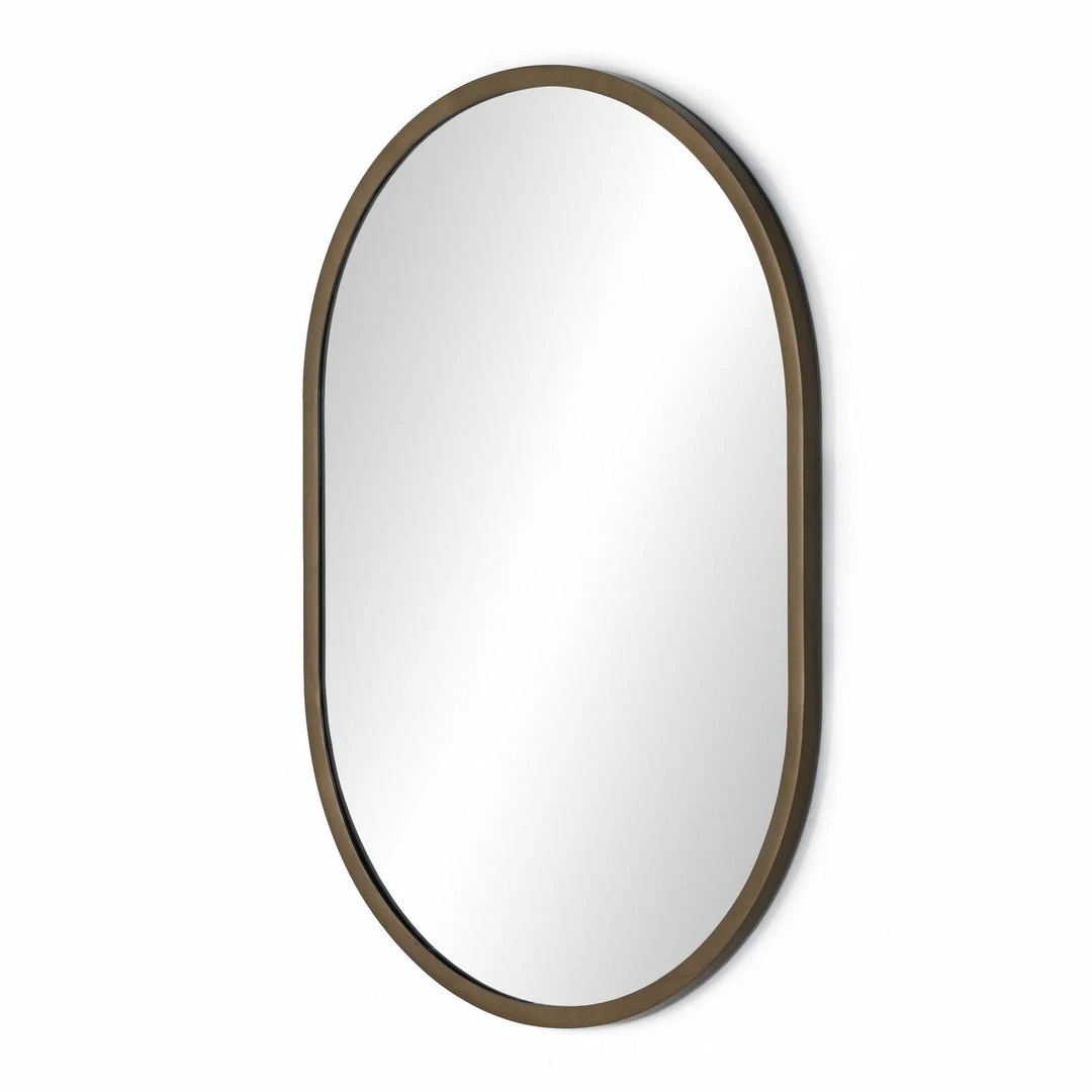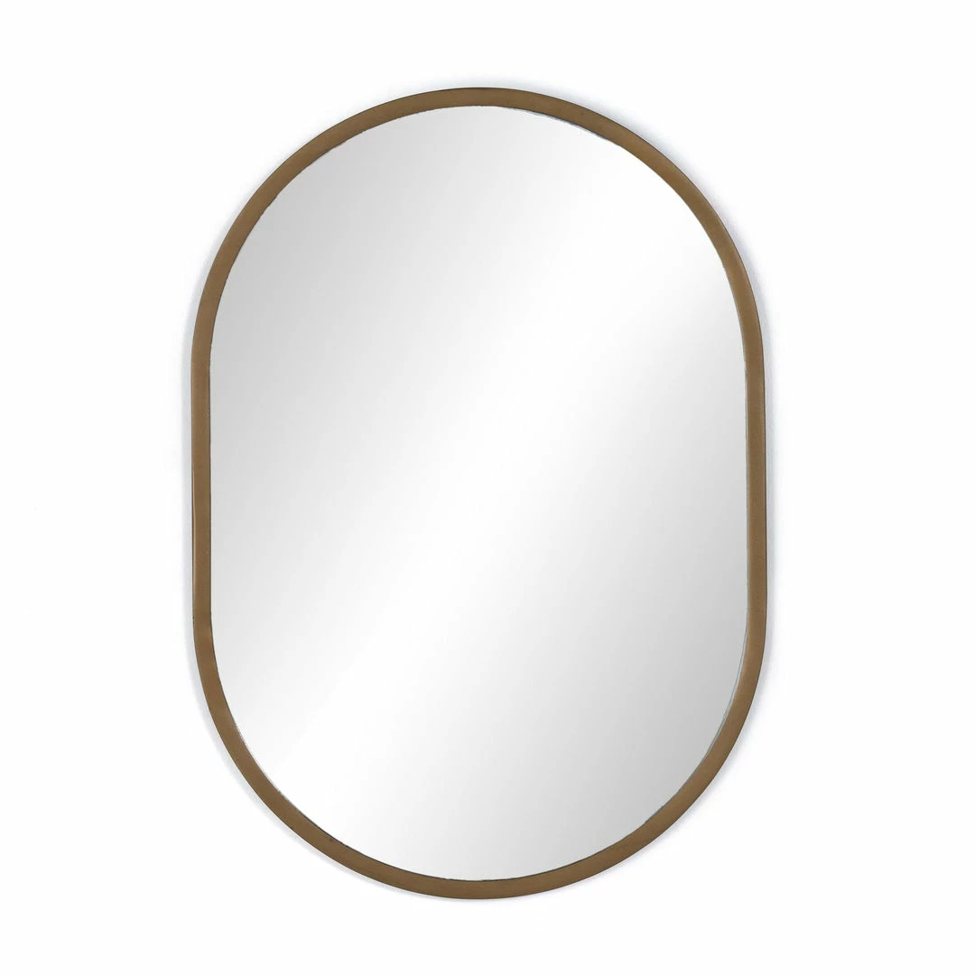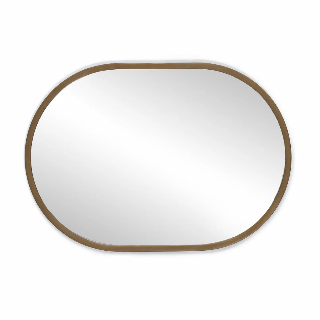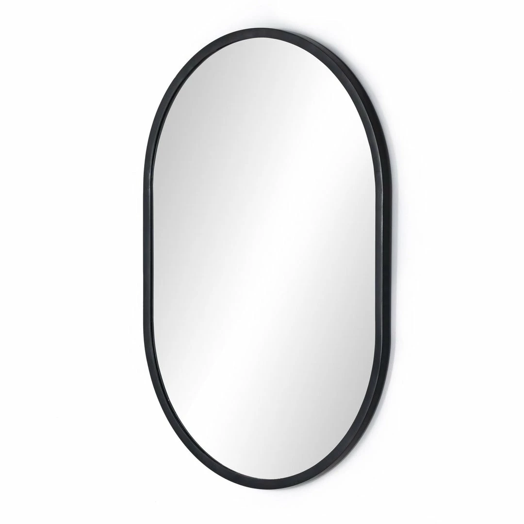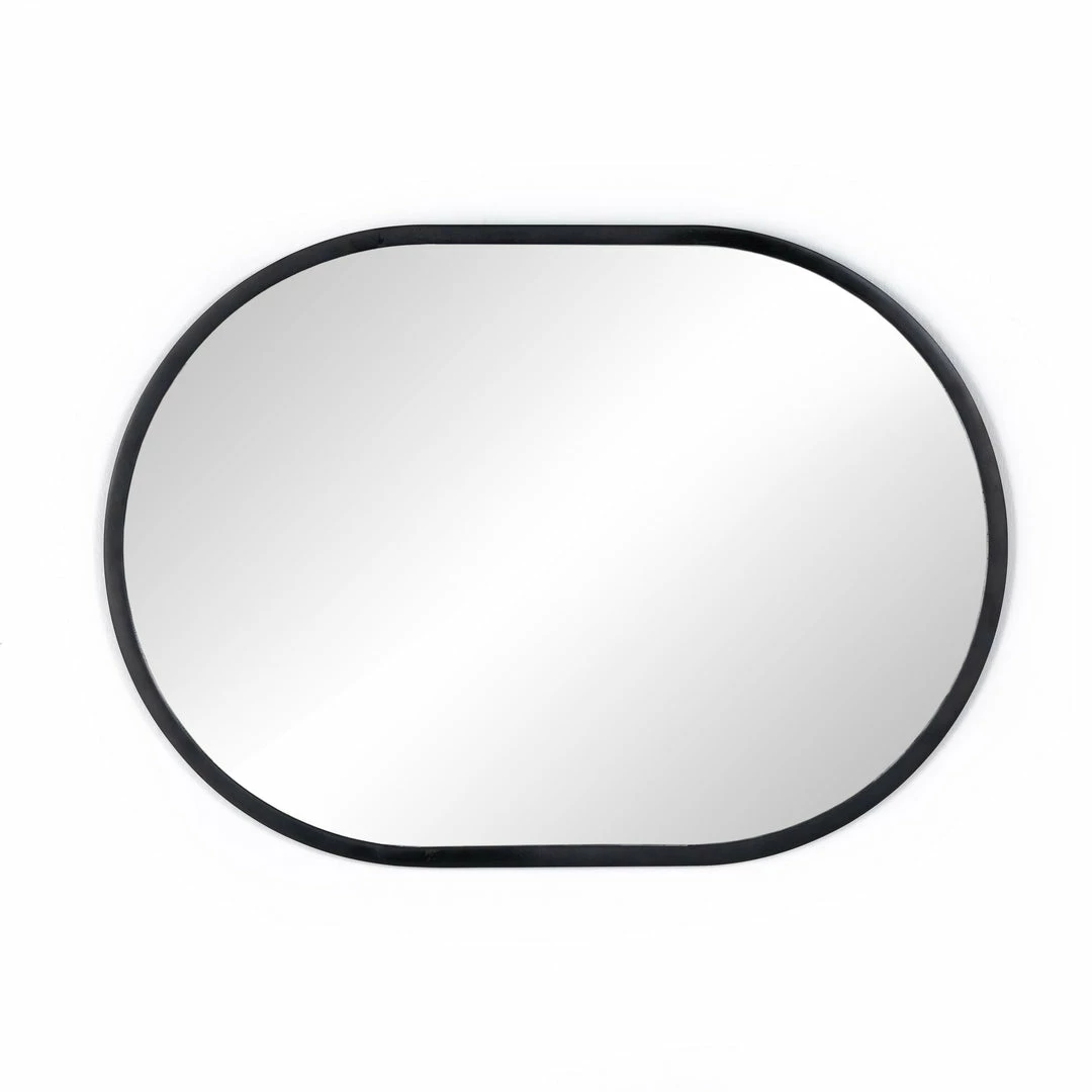 A classic rounded mirror is framed in iron with a matte black finish. Hang solo or in multiples.