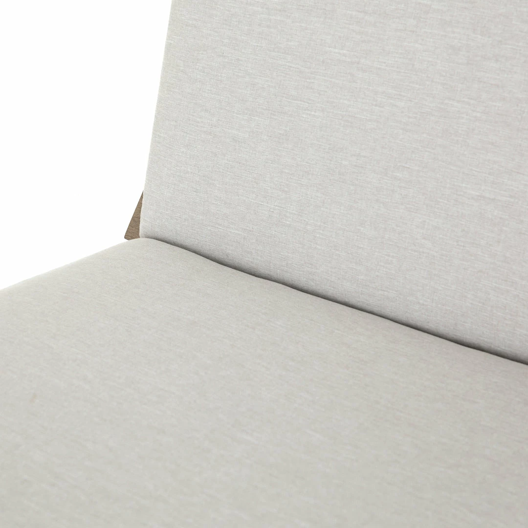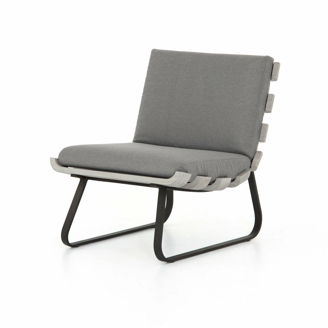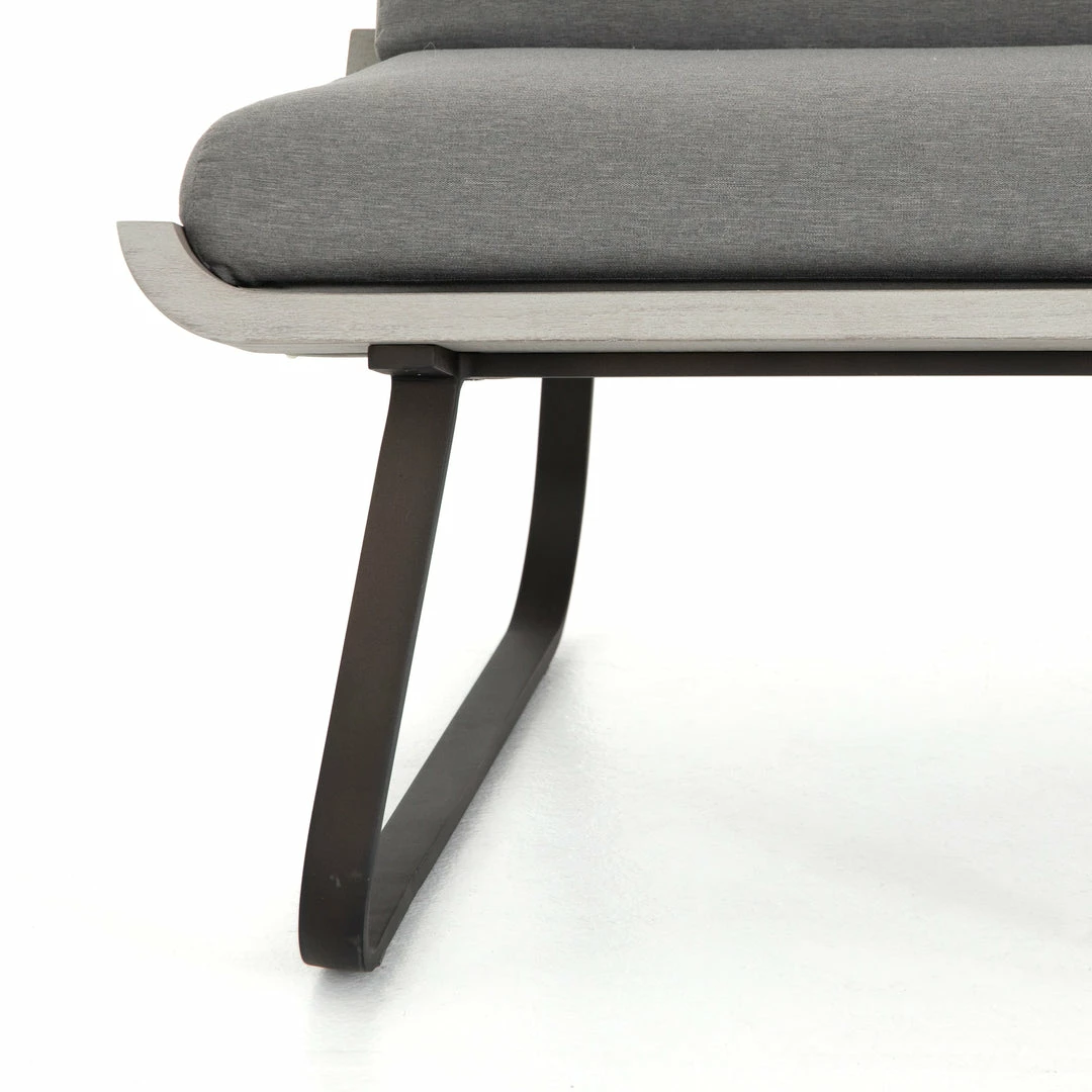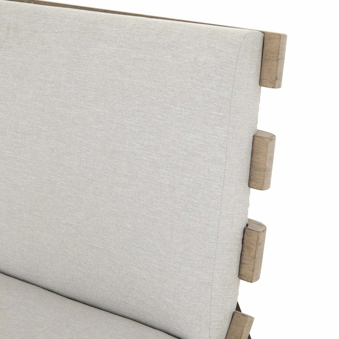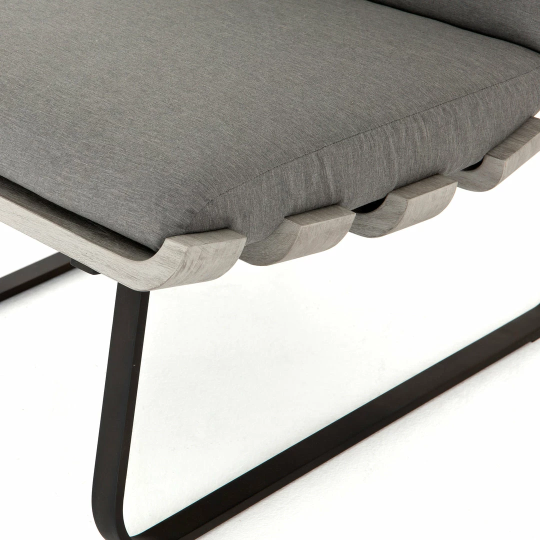 A slatted frame of FSC-certified teak supports spacious lounge-style seating. Cushions are covered in UV-resistant, water-repellent fabric. Finished with bronze aluminum legs. Cover or store indoors during inclement weather and when not in use.