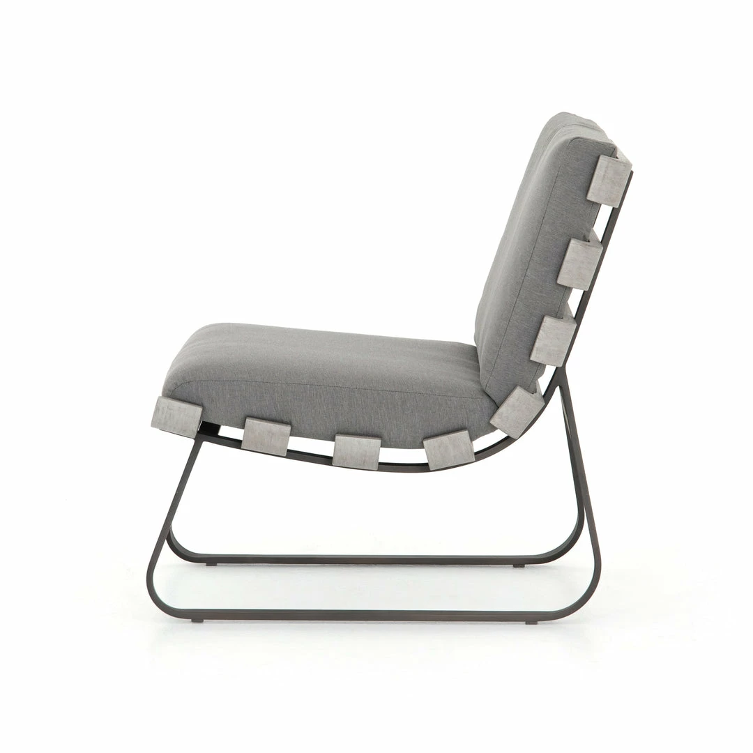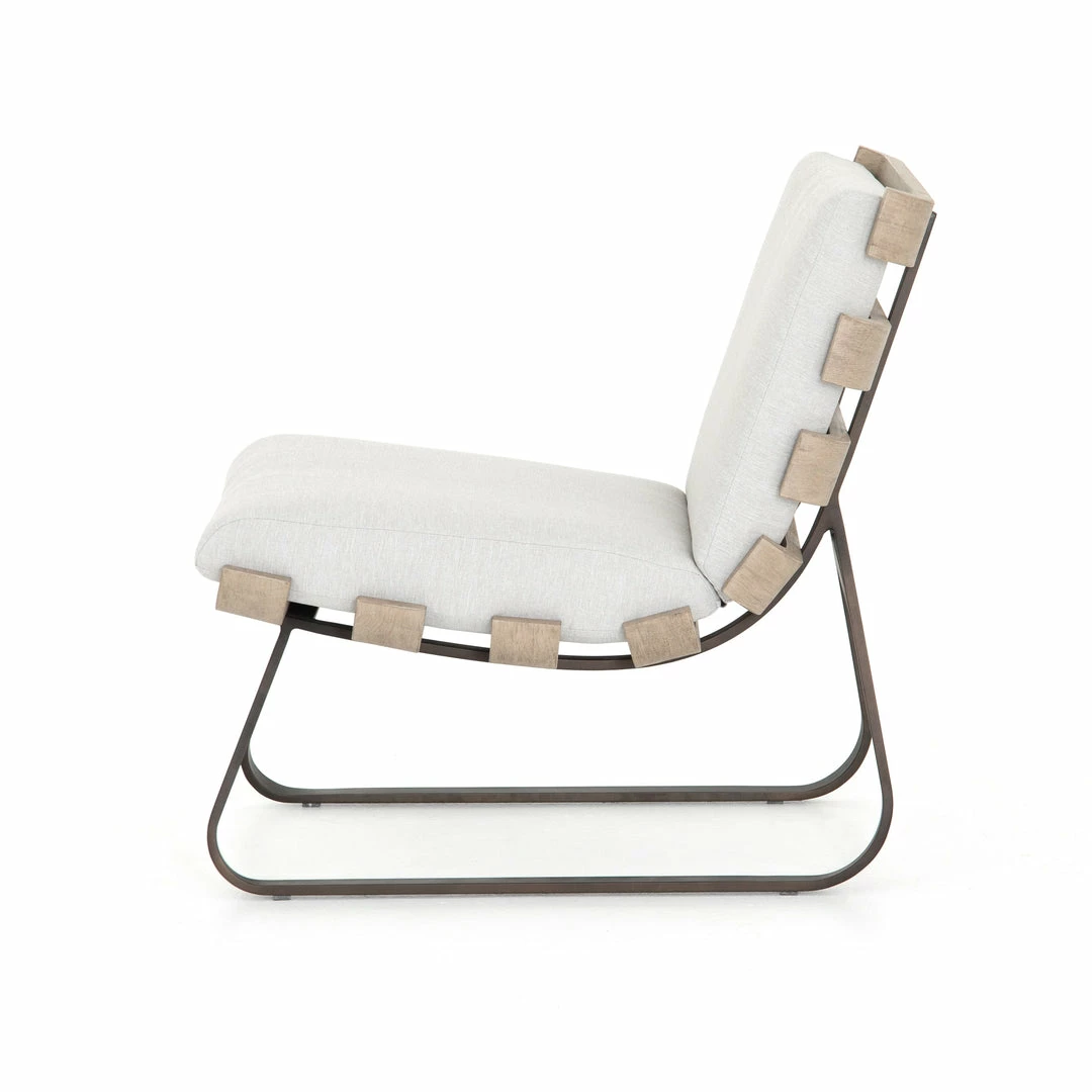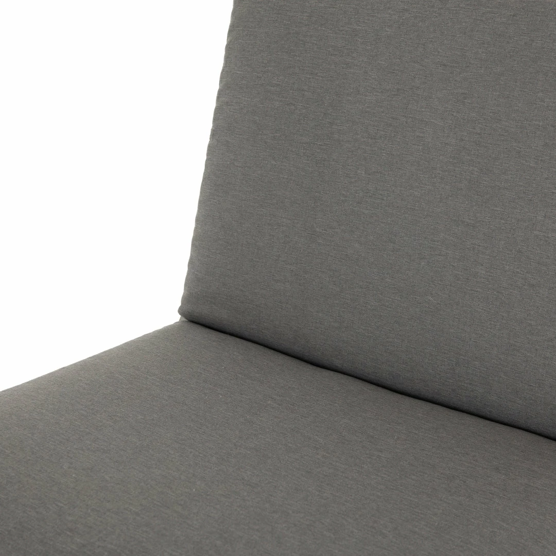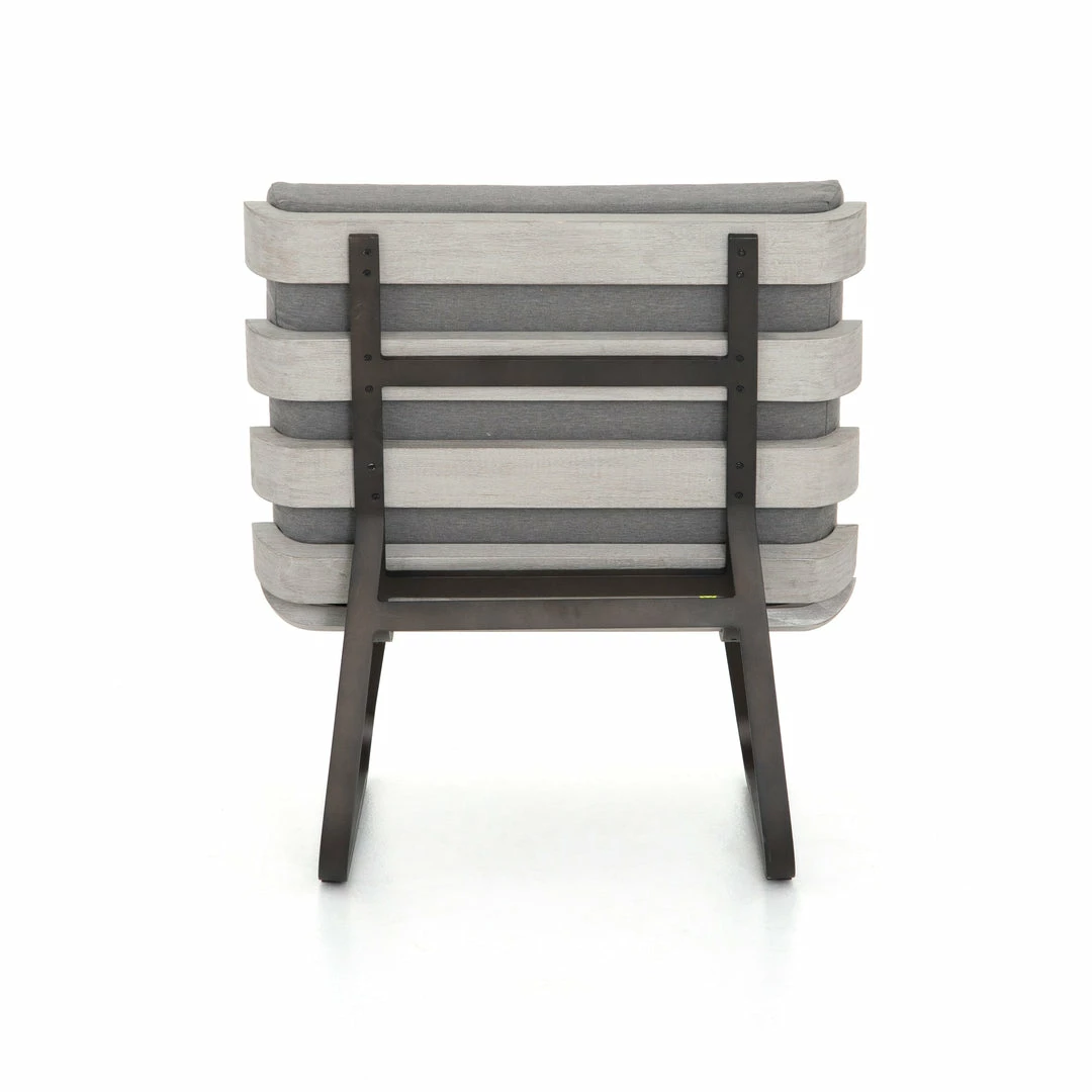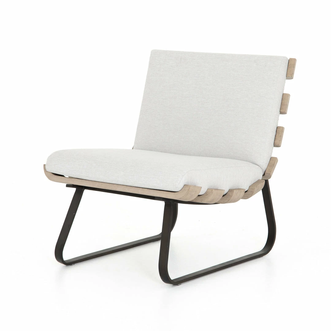 A slatted frame of FSC-certified teak supports spacious lounge-style seating. Cushions are covered in UV-resistant, water-repellent fabric. Finished with bronze aluminum legs. Cover or store indoors during inclement weather and when not in use.