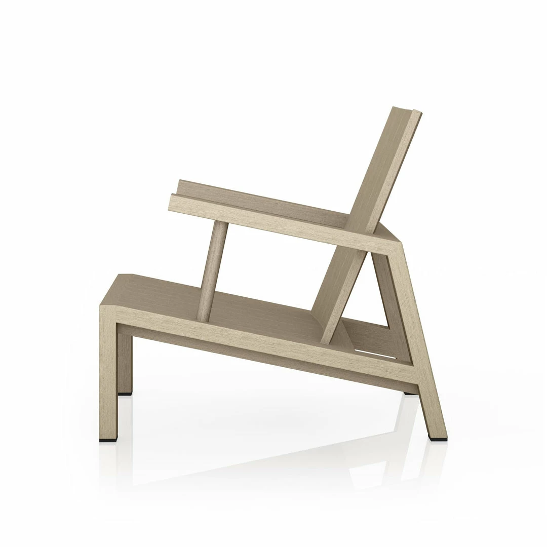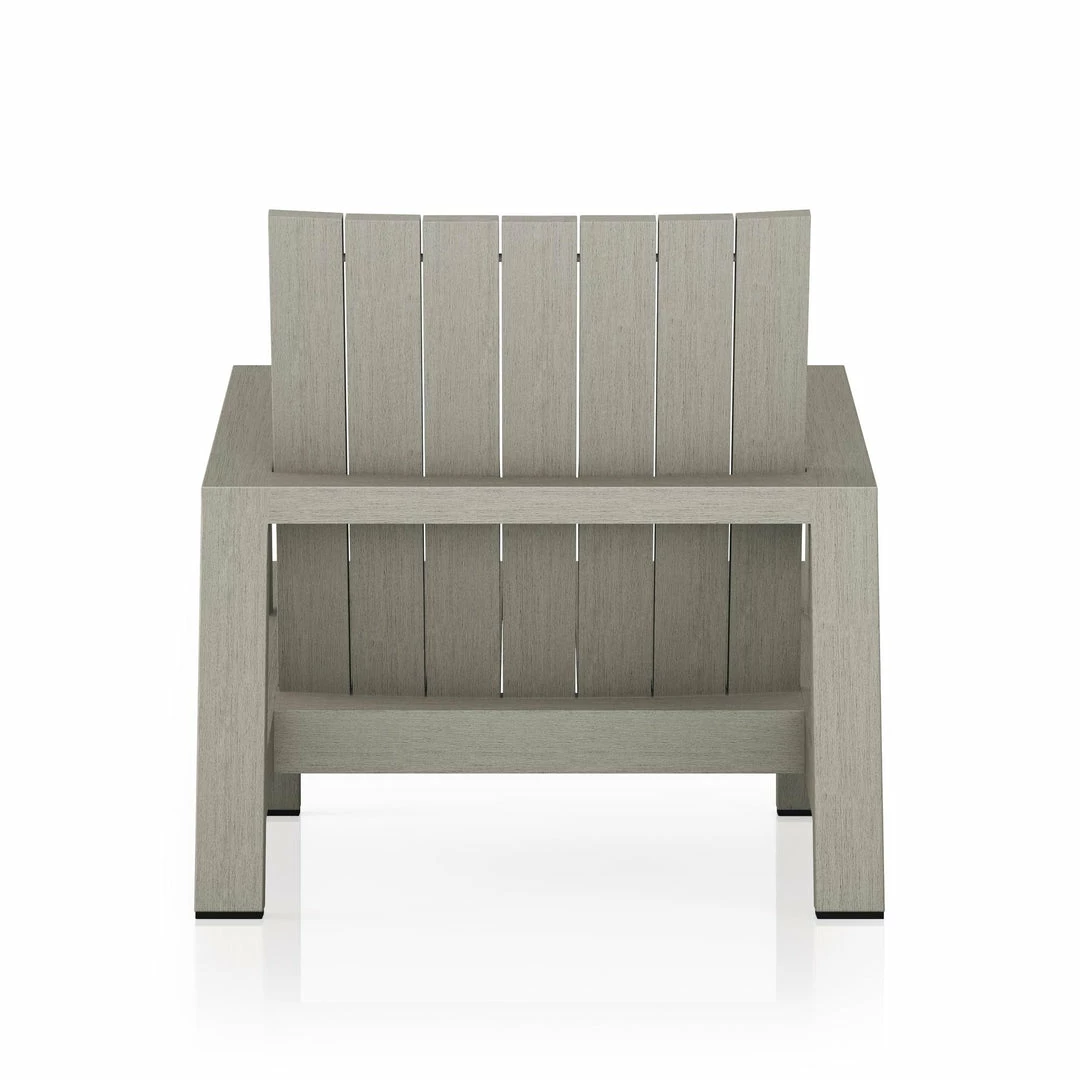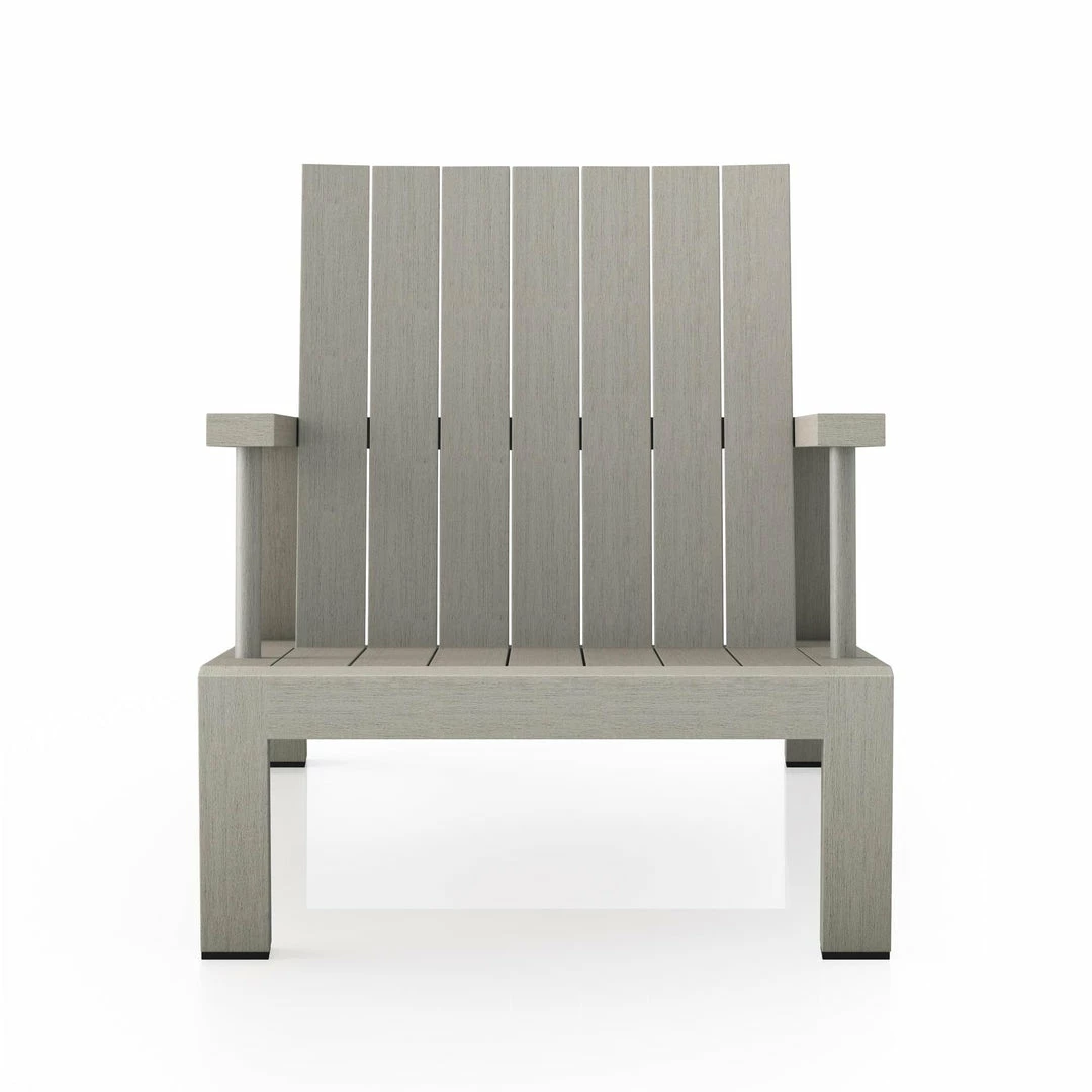 A modern take on the traditional Adirondack chair. Solid FSC-certified teak forms a wide angled base and frame detailed with sharp, linear lines. Cover or store indoors during inclement weather and when not in use.